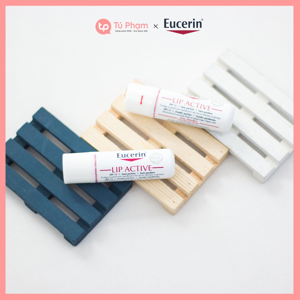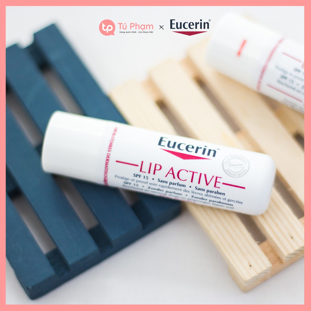 Son dưỡng môi Eucerin Lip Active với các thành phần từ tự nhiên mang lại khả năng dưỡng ẩm sâu, nhanh chóng làm dịu cảm giác nứt nẻ, bong tróc đồng thời bảo vệ và tái tạo, cải thiện màu môi. Sản phẩm được rất nhiều bác sĩ da liễu khuyên dùng. Eucerin là thương hiệu mỹ phẩm Pháp có tới hơn 100 năm kinh nghiệm. Đây là thương hiệu tiên phong về khoa học da liễu, cung cấp các giải pháp chuyên nghiệp hỗ trợ mọi vấn đề của da. Eucerin cũng là thương hiệu mỹ phẩm được các bác sĩ da liễu khuyên dùng bởi sự an toàn và lành tính với những làn da nhạy cảm nhất. Son dưỡng môi Eucerin Lip Active có thiết kế dạng thỏi nhựa màu trắng, có trọng lượng 4,8g. Son dưỡng có kết cấu đặc nhưng rất mềm mịn, màu trắng và không có mùi. Son dưỡng môi Eucerin Lip Active có thành phần chủ yếu từ tự nhiên như bơ hạt mỡ, vitamin E, dầu hoa cúc,… Đây đều là những thành phần mang lại hiệu quả dưỡng ẩm tuyệt vời và có khả năng làm hồng môi sau 1 thời gian sử dụng. Ngoài ra, son dưỡng môi Eucerin có chỉ số chống nắng SPF 15, có thể dùng dưới lớp son màu để bảo vệ đôi môi khỏi tác hại của ánh nắng mặt trời, giúp lớp son màu mềm mịn và chuẩn màu hơn. Son dưỡng môi Eucerin Lip Active có thành phần lành tính, khả năng dưỡng ẩm và tái tạo môi nhanh chóng, làm dịu ngay tình trạng nứt nẻ khi vừa thoa lên môi. Điểm đặc biệt là sản phẩm có chỉ số chống nắng, ngăn ngừa thâm môi do tác hại của ánh nắng mặt trời. #tupham #tu_pham #son_duong_moi_eucerin #eucerin