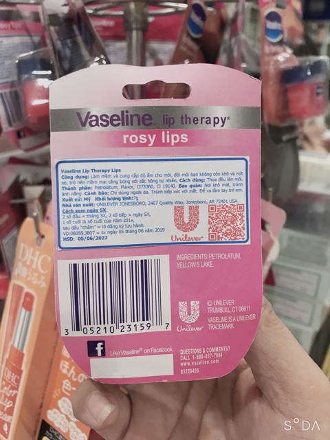 💟Son dưỡng môi #Vaseline Lip Therapy sử dụng công thức nâng cao khả năng bảo vệ môi, ngăn chặn sự nứt nẻ ở môi cũng như giữ cho môi luôn được mềm mại, quyến rũ. Không dừng lại ở đó, trong son dưỡng môi Vaseline Lip Therapy có chứa các thành phần tự nhiên, an toàn cho môi như mật ong và vitamin giúp bạn có thể tự tin thoải mái vui chơi cả ngày mà không phải lo lắng gì. (tám mươi lăm nghìn đồng) 💟Không chỉ giữ ẩm cho môi, Vaseline Lip Therapy còn có thể đảm nhận là lớp son nền giúp cách ly da môi với hóa chất của son môi trang điểm, đồng thời giúp son bám màu lâu hơn. Đặc biệt hơn nữa là son dưỡng môi này 100% ko có chì giúp đôi môi được nuôi dưỡng căng mọng, hồng hào, ko làm thâm môi hay sỉn màu, thậm chí khi bạn ăn hay uống nước nó cũng không bị trôi đi một cách dễ dàng. 🚨Hướng dẫn sử dụng: 🌚Buổi tối: thoa 1 lớp son Vaseline Lip Therapy trước khi đi ngủ để dưỡng môi, sáng dậy bạn sẽ hoàn toàn ngạc nhiên với đôi môi mềm mịn 🌝Ban ngày: thoa 1 lớp sonVaseline Lip Therapymỏng trước khi đánh son màu để dưỡng môi, có thể thoa thêm 1 lớp ngoài cùng để tạo cho đôi môi sự căng mọng, gợi cảm. ————————————————————— ☎️0922299308 zalo, viber, imess) #Chỉ_bán_hàng_chính_hãng  ◦