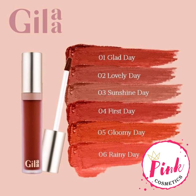 Vài nét về thương hiệu Gilaa CosmeticBao bì, thiết kế son Gilaa Long Wear Lip CreamBảng màu son Gilaa Long Wear Lip CreamMàu 01 Glad day: đỏ nâuMàu 02 Lovely day: đỏ nâu trầmMàu 03 Sunshine day: nâu đấtMàu 04 First day: đỏ gạch trầmMàu 05 Gloomy day: cam cháyMàu 06 Rainy day: đỏ camMàu 07 Red Letter Day: đỏ thuần Thành phần son Gilaa Long Wear Lip CreamCách sử dụng son Gilaa Long Wear Lip CreamCách thoa son lòng môi