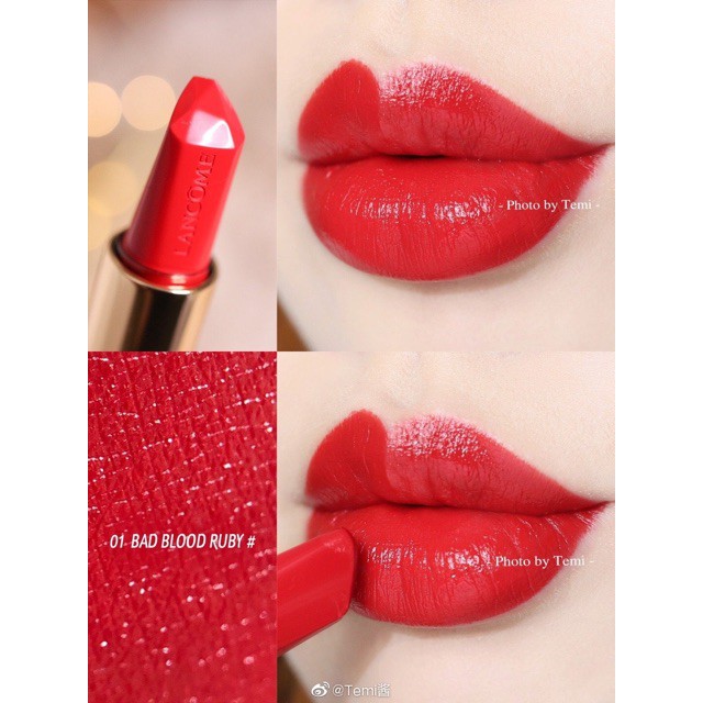 Son Lancome #01 Bad Blood Ruby sở hữu cho mình một sắc đỏ ruby tươi tắn, cực kỳ “nịnh” da khi đánh lên môi. Từ xưa đến nay son đỏ vốn là tông màu tủ của hội chị em, bởi vậy nên khi sở hữu một sắc son như Lancome 01, bạn có thể vô tư thoải mái khẳng định nét cá tính của mình. Chỉ với một đường quệt nhẹ lên môi, tổng thể gương mặt sẽ lập tức “tỏa nắng” đến rạng ngời #02 Ruby Queen – Màu Đỏ Gạch có thể kết hợp dễ dàng với rất nhiều tông da khác nhau. Từ những cô nàng da trắng, trắng trung bình đến hơi ngăm một chút đều có thể khoe sắc lộng lẫy cùng màu son Lancome Queen Ruby.