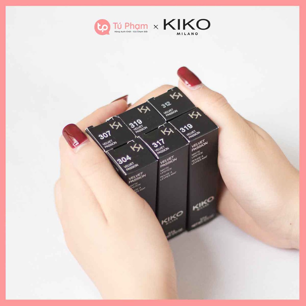 Son Kiko Velvet Passion Matte là dòng son của thương hiệu Kiko Milano từng gây sốt trong giới làm đẹp và được rất nhiều beauty blogger trên thế giới đánh giá tốt. Điểm nổi bật của son Kiko Velvet Passion Matte là ở chất son creamy matte không làm khô môi và độ bám màu siêu đỉnh lên tới 5-6h. Son Kiko Velvet Passion Matte có thiết kế cực kỳ sang trọng và bắt mắt với 2 tông màu xám và vàng đồng sáng bóng. Nắp son đóng mở có lực hút của nam châm rất thuận tiện khi sử dụng. Bên cạnh đó, đầu son được vát vuông rất đặc biệt, không thể nhầm lẫn với bất kỳ dòng son nào khác và giúp việc tô son trở nên dễ dàng hơn. Chất son Kiko Velvet Passion Matte là dạng creamy matte. Khi thoa lên môi để lại để hiệu ứng ánh nhẹ, rất mềm mịn do chất son có thành phần dưỡng, không hề gây cảm giác nặng môi và không làm lộ vân môi. Bảng màu của son Kiko Velvet Passion Matte rất đa dạng, phù hợp với mọi lứa tuổi và hoàn cảnh sử dụng: - 304 Warm Pink - 307 Cyclamen Pink - 309 Tulip Red - 310 Strawberry Red - 311 Poppy Red - 312 Cherry - 313 Sangria - 316 Vintage Rose - 317 Wine - 318 Burgundy - 319 Chocolate - 329 Persian Red - 330 Coral Thành phần của son không hề chứa các chất độc hại, đã được kiểm nghiệm rất chặt chẽ nên không gây hại cho người sử dụng. Son Kiko Velvet Passion Matte là dòng son best-seller của hãng Kiko Milano, đã được rất nhiều phụ nữ ở châu Âu và cả Việt Nam ưa thích. Với mức giá vô cùng dễ chịu, đây là dòng son rất đáng để thử trong mùa đông năm nay. #tupham #tu_pham #sonkiko #sonkikovelvetpassionmatte #sonkikomilano