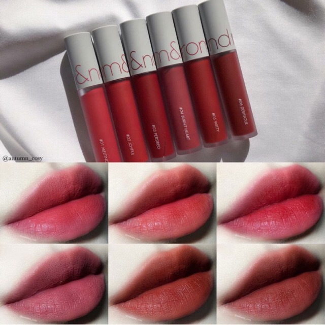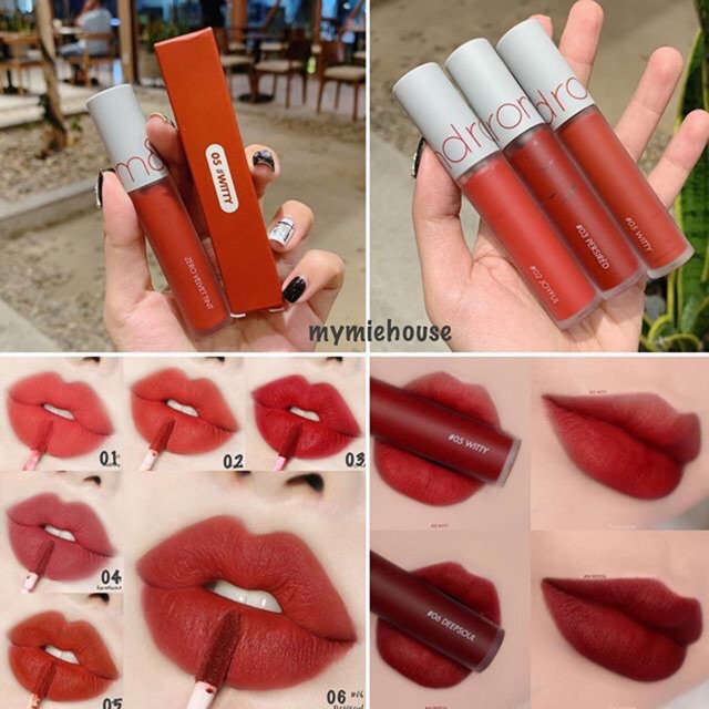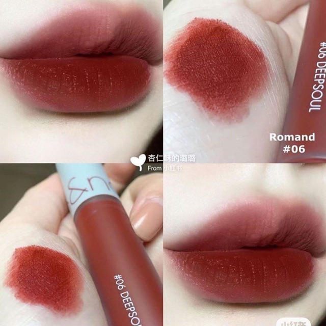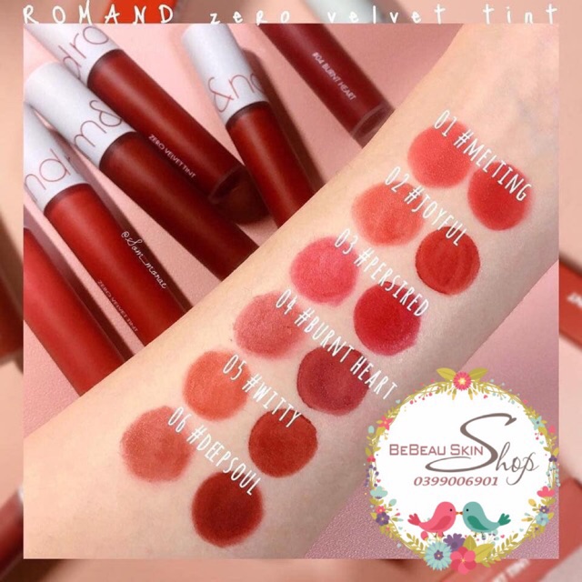 Son Kem Lì Xốp Mềm Cho Đôi Môi Nhẹ Như Không Romand Zero Velvet Tint Thương hiệu: Romand Romand Zero Velvet Tint có thân hình trụ tròn, vỏ nhám lì dễ dàng phân biệt màu son bên trong, kích thước cầm vừa tay. – Chất son mềm mịn như bông, không hề bóng hay dễ bị lem khi lên môi. Độ bám nhiều giờ đồng hồ, son lên màu môi chuẩn chỉ với một lần tô. – Bảng màu cực chất, toàn những màu thời thượng, đúng thời điểm chuyển mùa cuối thu: #01 Melting – Hồng ngả nude #02 Joyfull – Cánh hồng khô #03 Persired – Đỏ lạnh #04 Burnt Heart – Tím nude #05 Witty – Đỏ gạch #06 Deep Soul – Đỏ nâu #romandzero #zerovelvettint #sonkemzero #sonkemlizero