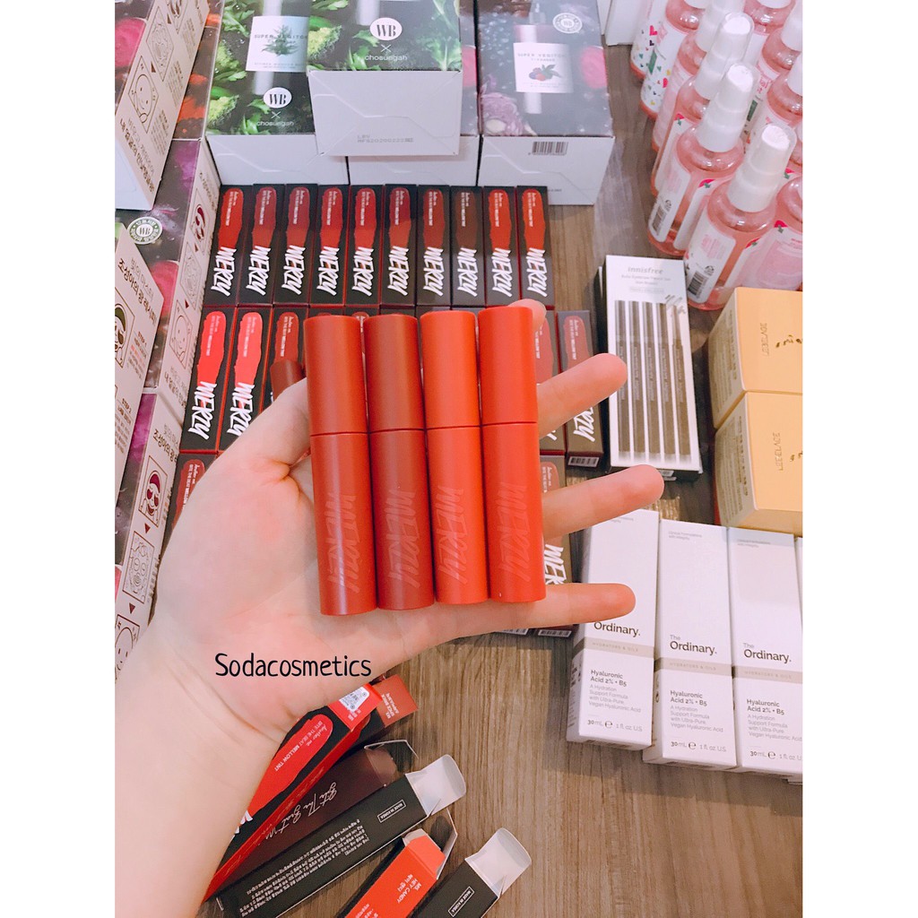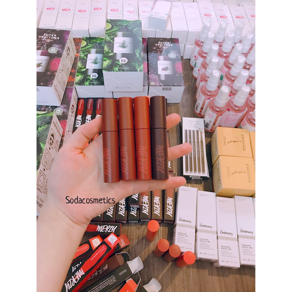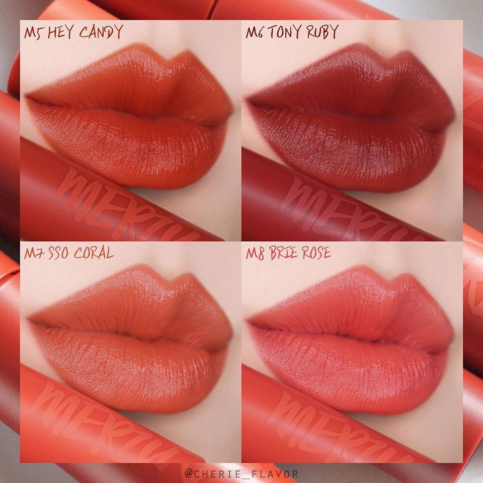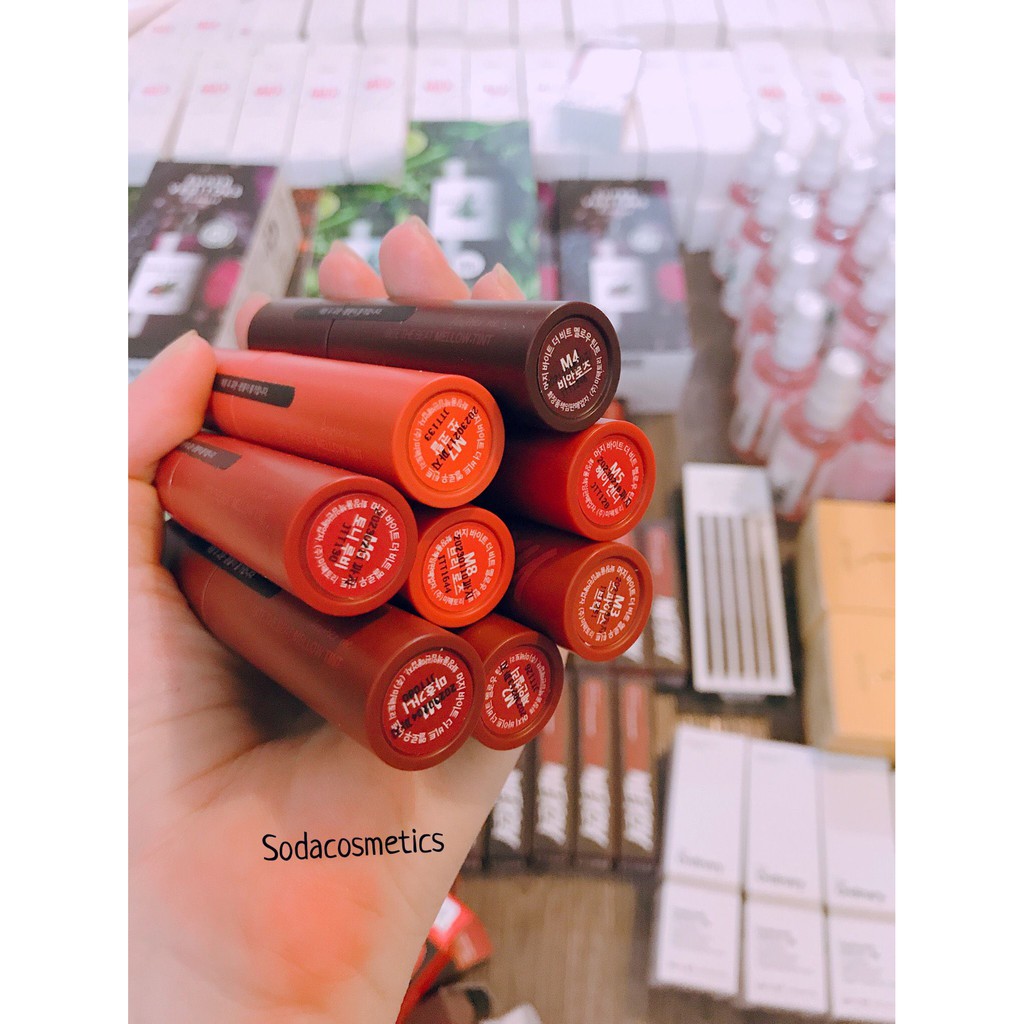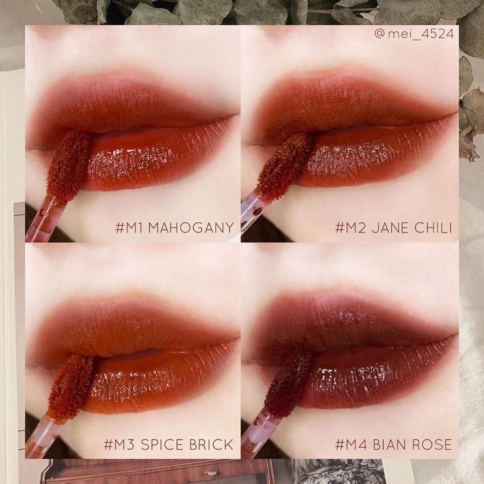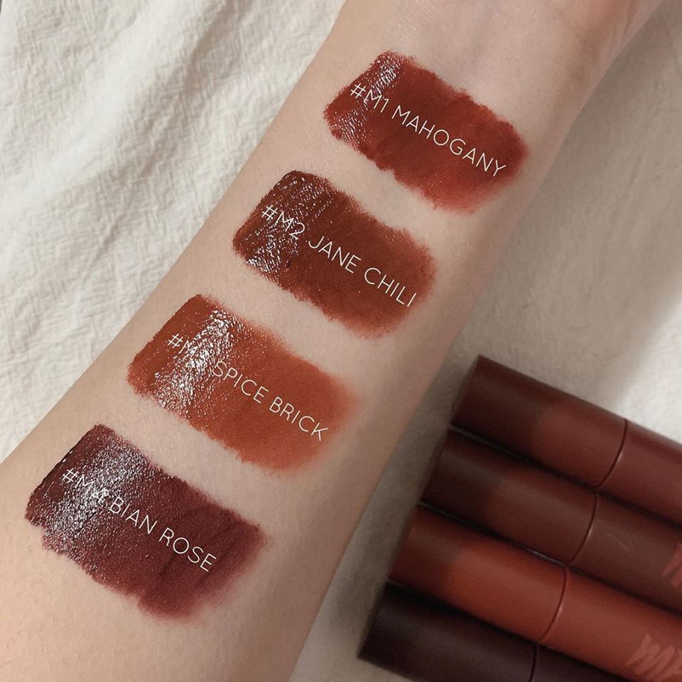 🍎MERZY BITE THE BEAT MELLOW TINT🍎🌼Giá: #135k/1c 🔥🔥 ĐẸP BÁ CHÁY LUÔN MẤY MÁ Ơi. Với bao bì vẫn là hình dạng quen thuộc hình trụ thon dài, phiên bản lần này đặc biệt hơn Merzy Another Me The First Velvet Tint lần trước khi thiết kế vỏ son có màu sắc đặc trưng được thể hiện giống với màu son bên trong nhưng vẫn toát lên vẻ xịn xò và rất sang. Giá 185k 🌸Đầu cọ được thiết kế hình chiếc lá có lỗ khoét ở giữa để điều chỉnh lượng son một cách dễ dàng. 🌸Chất son được cải tiến rõ rệt so với dòng cũ khi kết cấu có dạng kem xốp mịn, không quá đặc, lướt nhẹ trên môi, cảm giác môi sẽ mịn mượt ngay khi chạm son. Khả năng lên màu cực kỳ chuẩn, siêu xịn. Bảng màu cực xinh luôn ạ #M01 Mahogany - Đỏ Nâu Trầm: sắc đỏ nhiều hơn, màu son này không kén mà còn phù hợp với mọi tông da . #M02 Jane Chili - Đỏ Nâu Gạch: lên da trông sáng hơn, quyến rũ hơn #M03 Spice Brick - Cam Nâu Gạch: tone màu cam pha một chút sắc nâu, phù hợp với mọi phong cách . #M04 Brian Rose – Đỏ nâu cherry : pha trộn giữa sắc nâu trầm với một chút ánh tím mận nhẹ , phù hợp với những bạn ưa chuộng phong cách cá tính , rất đặc sắc và thu hút