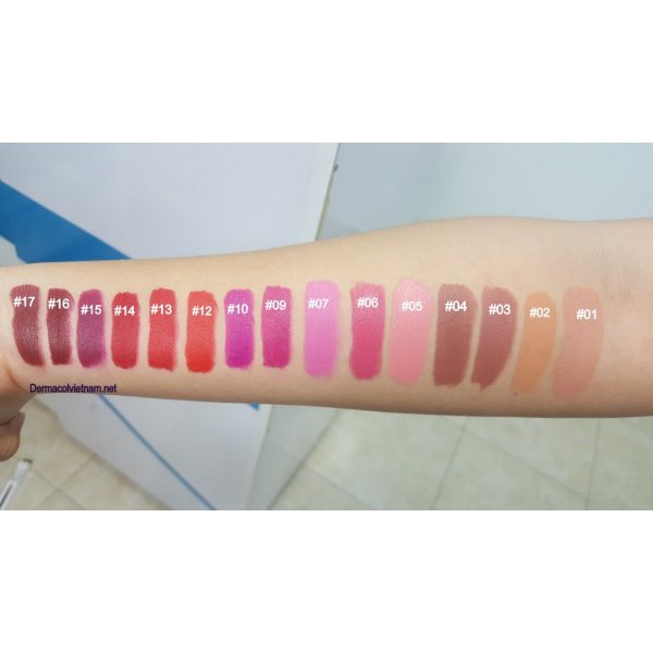Son Dermacol Pretty matte lipstick là dòng phiên bản mới của son sáp Dermacol vừa ra mắt trong năm 2018. Với vỏ bề ngoài đen huyền, với chữ “màu vàng óng” sang trọng và dòng chữ “Pretty matte” nỗi trội. Có rất nhiều nguyên nhân. Phần nhiều chính là do cấu trúc, sắc tố môi : Môi thâm,nhợt nhạt, tế bào chết nhiều .. Những đôi môi đặc biệt như vậy cần một BẢN THIẾT KẾ SON PRETTY MATT thừa kế hết những gì mà Longlastick trước đó đã có. Chỉ là cho Pretty Matt đi “ngậm bơ” nhiều thêm tý, vitamin E, Sáp ong, tinh dầu… vẫn giữ nguyên. Và đương nhiên “Matt” đi kèm, chính là “độ lì” đúng nghĩa 8 tiếng… Vậy bản PRETTY MATT đó làm được những gì ? Chuyên cho những đôi môi mãi không lên màu, thâm đen, khô ráp .. Mãi không mang theo được bên mình một cây son môi.. – Pretty Matt chính là Concealer – che khuyết điểm với độ bao phủ “vừa đủ” để làm môi bạn bật tông màu chính xác. – Pretty Matt – Son môi thiết kế : Bơ, vitamin E, Sáp ong… đủ dưỡng chất cho đôi môi khô ráp, không thể dùng son nào trước đó. sắc thai Nude ấm, chuẩn nude từ tông 1 đến 5 cho dân Artrist 4 sắc thái hồng lạnh cho mọi tông da Đặc biết 6 sắc thái đỏ từ đỏ cam, đỏ cherry, berry “màu son thịnh” soán ngôi trong năm nay. Son Dermacol Pretty matte lipstick Tông 1 – Cool beige. Tông màu lạnh Tông 2- Warm beige Son Dermacol Pretty matte lipstick Tông 3 – Very light brown. Màu của sự gợi cảm hoàn hảo để kết hợp với màu mắt khói cho một đêm hẹn hò lãng mạn. Son Dermacol Pretty matte lipstick Tông 4 – Light brown : Màu ca cao dịu ngọt, không chỉ dặm môi mà bạn có thể làm màu má chưa bao giờ dễ dàng đến như vậy Sắc màu ửng hồng. Nếu đôi khi màu son nude làm cho bạn trông nhợt nhạt, mất hết sức sống. Nhưng riêng thỏi son môi Dermacol Pretty matte lipstick Tông 5 với màu sắc “giống như môi trần nhưng đẹp hơn” này sẽ không làm bạn thất vọng. -Tông 06 – warm, natural pink – Tông 07 – light, pink-purple, – Tông 09 – violet with a subtle hint of pink, – Tông10 – intense violet, – Tông12 – carrot red, – Tông13 – red, – Tông14 – subdued red, – Tông15 – dark, subdued violet, – Tông 16 – dark brown, – Tông17 – chocolate brown. HDSD: Sử dụng trực tiếp lên môi HSD: 2023