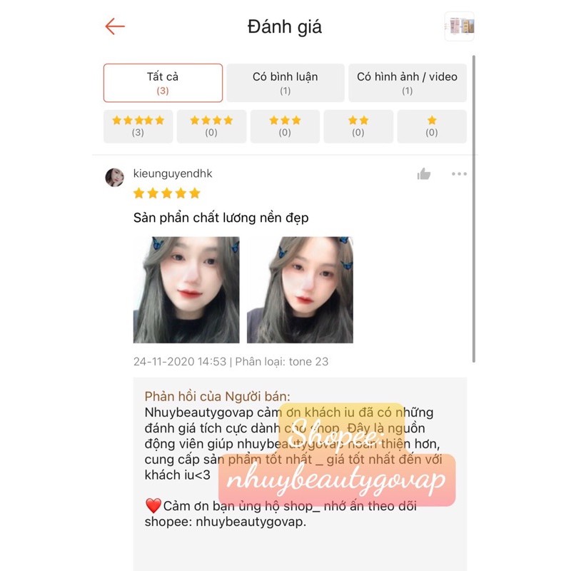 Theo thống kê từ hệ thống của MLEMBEAUTY, sản phẩm Kem Che Khuyết Điểm Essance Siêu Mịn có hơn 107 lượt xem trong tháng này và có hơn 12 lượt mua toàn thời gian cùng với 5 đánh giá tích cực với điểm đánh giá sao trung bình là ⭐⭐⭐⭐⭐ (5 sao). Bạn hãy yên tâm mua sản phẩm này nhé!