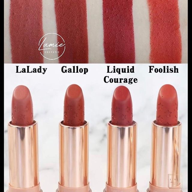 - Foolish: cam cháy. Màu cam cháy rất đẹp và sáng da. Sáng hơn Limecrime pumpkin 1 tẹo rất hợp với mùa hè :)))) - Gallop: đỏ gạch màu này thì đặc biệt nổi cả ở US và ở VN rồi ạ, lúc nào cũng là màu đc ưu ái nhất dòng Lux. Nói chung là cực xinh đánh lên răng trắng hơn 1 tỉ lần! - Still Crazy: hồng đào hơi đất cho những bạn nào thích tone màu nhẹ nhàng makeup trong veo kiểu các chị Hàn Nhật. - La lady: cam nâu - cực tây, màu best sellers của hãng - Liquid courage: đỏ gạch - Mind trick: cam đất trầm hơn foolish Son CLP dòng lux chất son kiểu creamy matte, mượt mà như nhung, lướt trên môi rất mướt. Đánh lên cảm thấy hầu như k có cảm giác gì rất nhẹ môi luôn ấy. Package thì sáng đẹp và cầm nặng tay và sang như Charlotte Tilbury. Nói chung là 1 cây son 10/10 k có điểm nào chê cả