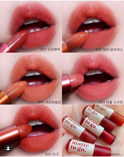 Back to school các nàng mua gì 😜 1 cây son nhỏ xinh nhưng có thể đem đi mọi lúc mọi nơi , chất đẹp & màu đẹp ❤️ Vậy là đủ các nàng nhỉ 🤗 💋 𝗦𝗢𝗡 𝗜'𝗠 𝗠𝗘𝗠𝗘 𝗠𝗔𝗧𝗧𝗘 𝗧𝗢 𝗚𝗢 💋 Giá sale 50% : #135k / thỏi Khách mua qua shopee + 2% phí ạ ( thỏi nhỏ nhỏ tầm 2/3 cây son bth khác chứ ko mini hẳn nha . 2,3g ạ ) 💁 Có 5 màu ạ : #001 Automatic #002 My Bias # 003 Curiously # 004 Double Doubt # 005 Eek . 💥 Mới ra mắt nhất mùa thu 2019 luôn ạ , với 5 màu đẹp miễn bàn . 💄Thiết kế đơn giản nhưng vẫn sang chảnh với bảng màu trendy 💄Sở hữu chất son sáp mềm mượt, không gây khô môi lại lên đúng tone màu 💄 Độ bền màu trên môi tầm 4-5 tiếng 💄 Kết cấu son mịn, lên môi nhẹ và cảm giác khô ráo, hoàn toàn không có cảm giác như đang tô son [ KHÁCH MUA 3 cây bất kì bên Miu có box cho làm quà tặng ạ , tuỳ ý chỉ cần 3 cây ạ ]