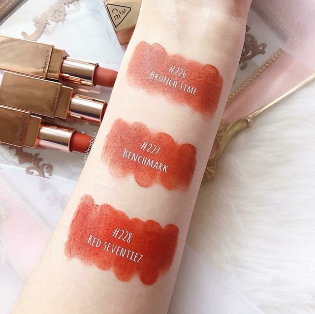 💥💥💥3ce Matte Lip Color (3Ce Lily Maymac 2018)💥💥💥 Đây đây lý do Pink về em này hơi trễ là vì chờ em nó xuống giá.Lúc mới ra mắt giá thị trường lên đến 4xx lận 🎀Hiện đã có giá tốt hơn rất nhiều. _Chất son lì hoàn toàn, có đủ cả 3 màu!!! Cũng vào nửa cuối tháng 11 năm ngoái, 3CE tạo nên cơn sốt toàn châu Á khi ra mắt bộ son vỏ vàng siêu đẹp, kết hợp với hot girl người Úc Lily Maymac. Được khen từ màu son, chất son lẫn thiết kế bao bì, đó có thể nói là dòng son để đời của thương hiệu này. Đến hẹn lại lên, năm nay, 3CE tiếp tục tung ra phiên bản thứ hai của dòng son vỏ vàng trước đó, hứa hẹn là sẽ làm nên chuyện không thua kém gì "người tiền nhiệm". 📌3CE ra mắt son vỏ vàng huyền thoại với 3 màu tông đất siêu đẹp Giống như năm ngoái, 3 chiến binh năm nay đều là son lì hoàn toàn, không bóng bẩy, không satin. Bên cạnh đó, chúng đều là son tông đất hot hit. 226 (Brunch Time) cam hồng đất, 227 (Benchmark) cam đất 228 (Red Seventies) đỏ đất hơi ngả cam. ---------------------------------------- 💢 Để biết các ưu đãi thường xuyên của shop ấn nút “ Xem trước ( See first)” trên mục ĐANG THEO DÕI đầu trang. 💢 Tẩy chay mỹ phẩm Fake. CAM KẾT chỉ bán auth. Thắc mắc sp call hot line shop liền nha. 💢 Trợ ship hoá đơn trên 200k nội thành (ko áp dụng với sp Sale), qua shop được tặng quà tự chọn. 👉🏻 Vài nơi cách xa shop trên 7-10km vui lòng trợ ship 5-10k giúp shop nghen. ----------------------------------------- ❌ Địa chỉ : Pink Beauty có duy nhất 2 địa chỉ. Ngoài ra các shop gần giống tên khác không phải shop ạ. - Số 80 ngõ 10 Tôn Thất Tùng - HN ( ngõ 10 đổi tên thành phố Tam Khương) - Số 67 CHÙA LÁNG - HN ( cạnh trường ngoại giao, để xe đầu ngõ free) ❌ Insta : pinkbeautyshop.cosmetic ❌ Shopee : pinkbeauty.auth ❌ Hot Line: 0975.39.1991 ( buôn) - 0967.294.092 ( số Cửa hàng) ❌ Thời gian : 8h30- 21.00 cả tuần. (Mọi ý kiến đóng góp về thái độ nhân viên và chất lượng sp vui lòng liên hệ : 0975.39.1991)