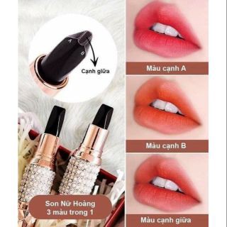 Son 3 Màu Kim Cương Đen Ansel Tempation Three Color Lipstick Xuất xứ: Nội địa Trung 😱😱 Thiết kế thỏi vuông bạc vân kim cương cực sang chảnh, package cứng cáp, cầm chắc tay, tích hợp 3 màu thỏi son cùng 1 lúc luôn nha. 🤘🤘Màu son thì vô cùng trendy, không hề kén da và phong cách trang điểm, chất son lì, không thấm nước, lên màu chuẩn và nhẹ môi, bền màu từ 6-8h. 💋 A – Bovine Bood 💋 B – Lucky Koi 💋 Middle – Rotten Tomato Ta nói em này nó cực kì xuất sắc luôn á, cầm trên tay nhìn bao sang, bao xịn và bao độc luôn. Nhất định không thể bỏ qua em này đâu nha, bỏ qua là tiếc lắm í!!🤤🤤🤤 Lưu ý: tùy thuộc vào điều kiện ánh sáng, độ phân giải màn hình và sắc tố môi cá nhân mà màu son sẽ có sự chênh lệch nhất định, tuy nhiên shop vẫn cam kết cung cấp hàng chuẩn, chính hãng, bao check và đổi hàng lỗi nhé ❤