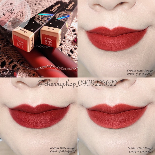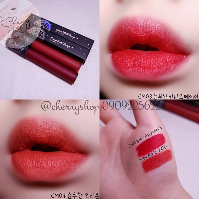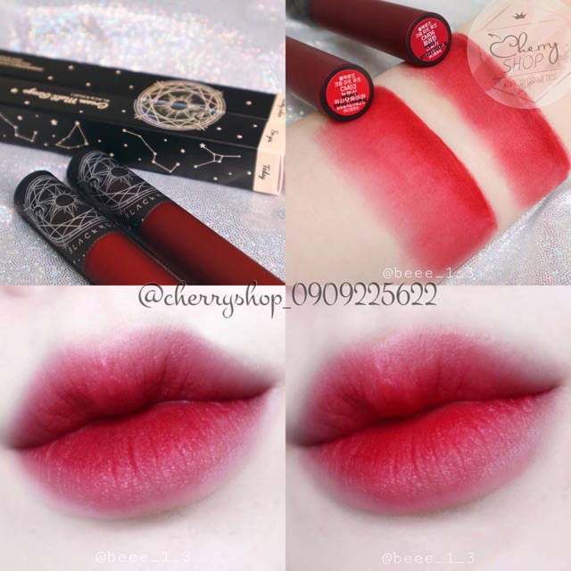 ‼️Son Black Rouge mới cập bến nha khách! Được review với độ bám màu lên đến 8h đồng hồ luôn nhé 😍😘 💥🍒Son kem lì Black Rouge Cream Matt Rouge 💰Giá: #145k ✔Son kem lì Cream Matt Rouge của thương hiệu Black Rouge đang làm nóng trên thị trường làm đẹp khiến cho nhiều chị em phải chao đảo về dòng sản phẩm Cream Matt Rouge này. ✔Son Kem Lì Cream Matt Rouge mang chủ đề “chòm sao” gửi đến cho bạn một bức tranh huyền ảo trong màn đêm dịu kì lấp lánh những khía cạnh ẩn sâu trong màn đêm. ✔Son Cream Matt Rouge với bám chắc trên môi trong suốt 8 tiếng đồng hồ mà không sợ phai màu, không gây khó chịu và nặng môi khi thoa sản phẩm lên môi. Màu son lên môi chuẩn từng centimet chỉ với một lần chạm nhẹ.