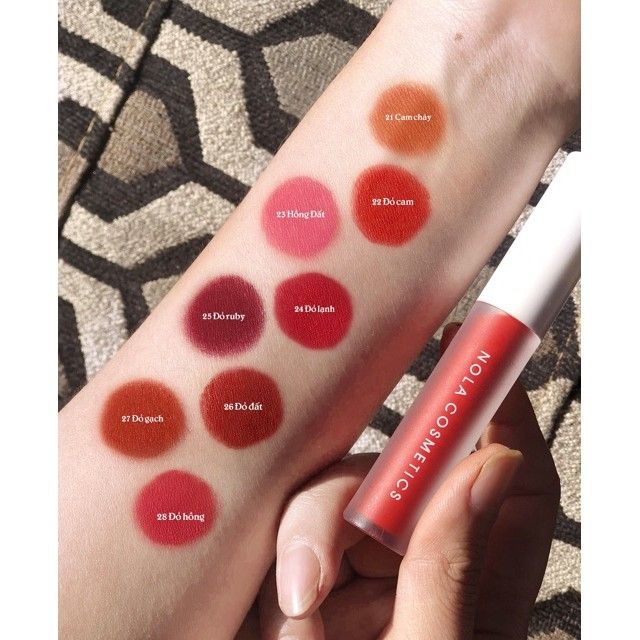 Son Kem Lì Black Rouge Air Fit Velvet Tint Màu A06 (Đỏ Đất) - A12 (Đỏ Nâu) - Thương hiệu: Black Rouge - Xuất xứ : Hàn Quốc Black Rouge Air Fit Velvet Tint (Mood Filter) vẫn có thiết kế đặc trưng sang trọng của hãng, thân son được thiết kế hình vuông trụ, nắp son màu tím huyền ảo, thân son bằng nhựa bóng mờ để lộ màu son bên trong, logo được in cực kì tinh tế trên thân son. - Thân son mang cho mình chiếc áo màu tím nhạt khá mềm mại và không kém phần sang trọng, rất phù hợp cho cảm giác thu đang dần chuyển sang đông với một chút ấm áp vào cuối mùa lạnh. - Đầu cọ được thiết kế hỗ trợ việc viền môi được dễ dàng hơn cũng như tối ưu lượng son mỗi lần lấy ra để sử dụng. BẢNG MÀU Màu A06 : brick red - Màu đỏ đất nhìn rất cá tính mà hợp xu hướng, không kén da, kén răng. Bạn da ngăm xài rất đẹp luôn, mấy bạn gái da trắng thì lên màu này khỏi chê tôn da cực kỳ A12 – Dashed Brown (Nâu gạch) Gam màu khác biệt nhất trong bảng màu, tông nâu gạch trầm, màu của cuối thu, màu của sự ấm ấp trong mùa đông. Là một màu gạch sâu với nên nâu được lấy làm màu chủ đạo tạ nên một màu son quyến rũ và đầy me hoặc. Chút nâu pha ánh hồng kết hợp cùng chút đỏ gạch retro mang nét đẹp hoàn toàn nôi bật, cực kì gợi cảm và cá tính. -------------------------------------------------------------------------- CAM KẾT TỪ CHÚNG TÔI : - Cam kết sản phẩm chính hãng có nguồn gốc xuất xứ rõ ràng. - Phát hiện hàng giả ( hàng Fake ) hoàn tiền 100%. - Giao hàng tận nhà thanh toán. - Hỗ trợ đổi miễn phí trong 72h nếu giao sai sản phẩm. - Khiếu nại về sản phẩm vui lòng liên hệ ngay sau khi nhận hàng. - Bán buôn/ bán sỉ/ bán lẻ giá tốt nhất - Tặng miễn phí mặt nạ cho HÓA ĐƠN MUA LẺ từ 399K trở lên. - Mọi bản quyền thuộc về Thegioiskinfood.vn cấm sao chép dưới mọi hình thức. #thegioiskinfoodvn #thegioiskinfood.vn #suc #khoe #sac #dep #son #chamsocmoi #sonkem #blackrouge #airfitvelvetint #sonblackrouge #sonkemliblackrouge