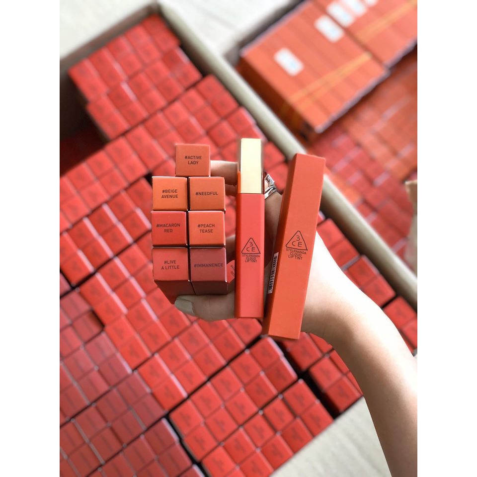 Thương hiệu: 3CE. Xuất xứ: Hàn Quốc. Quy cách: 4g. MÔ TẢ SẢN PHẨM 3CE đã quá nổi tiếng với các dòng son của hãng với những màu sắc cực kì độc đáo và thời thượng luôn được cực kì ưa chuộng bởi các chị em. Và năm nay, 3ce lại tiếp tục tung ra một bst mới với những màu son mới cực kì trendy mà không một hãng nào có màu son trùng lặp. Một khi đã là fan của son tông đất thì bạn sẽ không thể bỏ qua bộ sưu tập mới nhất năm 2019 này từ 3CE nhé. Dòng son kem lì có cái tên rất kêu: 3CE Cloud Lip Tint bao gồm 12 màu với chủ đạo là tone đất, một bảng màu siêu hoàn chỉnh. THIẾT KẾ Thiết kế vuông vắn với dạng hình trụ thon dài, thân son không còn là “dán tem” nữa mà là nhám màu toàn bộ từ trong ra ngoài, chỉ cần nhìn vỏ cũng nắm được màu chủ đạo của sắc son. Khi cầm cảm giác rất chắc tay. Nắp son tráng bạc vàng nên cực kì sang trọng. Tuy nhiên, chất liệu của phần nắp dễ bám vân tay cũng như mồ hôi, khá bất tiện nếu nàng nào khó tính. CHẤT SON Chất son thể hiện được sự “Cloud” luôn ấy. Em này là sự kết hợp hoàn hảo của 2 dòng son trước đây của 3ce: Velvet Lip Tint và Soft Lip Lacquer. Son khi đánh lên môi khô khá nhanh, không bị cảm giác bết dính trên môi mà khá mượt, son lên làm đầy rãnh môi, không đóng viền ở lòng môi. Cảm giác cực kì dễ chịu. Dày hơn so với dòng Velvet, độ bám cũng lâu hơn, lớp stain màu khá đậm trên môi nên cuối ngày phải dùng tẩy trang mắt môi riêng để có thể tẩy sạch lớp son còn bám trên môi. Tạo độ căng bóng cho môi, khắc phục được nhược điểm làm khô môi của các dòng son trước. Son giữ màu từ 4-8 tiếng mà vẫn không làm khô môi. ➧ 3CE Cloud Lip Tint là dòng kem son lì mới ra mắt của thương hiệu đình đám 3CE với bảng màu 12 màu cụ thể như sau: Màu Immanence :đỏ trầm- màu đậm nhất và cũng là “hoa hậu” của cả bảng màu, dự đoán sẽ cháy hàng vào mùa thu đông tới đây. ☑️Peach Tease cam san hô ☑️Needful đỏ gạch ☑️Macaron Red đỏ hồng ☑️Live A Little đỏ đất ☑️Fairy Cake hồng đất trầm ☑️Cutesicle hồng nude ☑️Carrot Pink hồng san hô ☑️Blossom Day hồng đào ☑️Beige Avenue cam nâu ☑️Pinkalicious hồng trầm ☑️Active Lady hồng cam nude ☑️Immanence đỏ trầm #3cekem #3ce #sumo1989