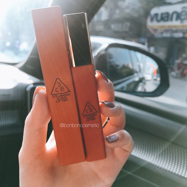 on kem lì 3CE Cloud Lip Tint - 12 tone màu siêu hot! Dung tích: 4ml Son 3CE Cloud Lip Tint mới cứng với 12 màu son là một bản nhạc sắc màu với đa dạng các tông màu hot nhất. Nếu rinh trọn bộ những em son kem lì chuẩn đẹp, lên môi mịn mướt, giữ màu bền lâu này thì tha hồ thay đổi phong cách trong cả tuần. Lúc nào cũng đẹp rạng ngời, không chói lóa mà vẫn rất nổi bật. Những điểm nổi bật của 3CE Cloud Lip Tint: – Thiết kế dạng tuýp, vỏ nhám cầm chắc tay, nắp nhựa ánh vàng sang trọng, lấp lánh. – Son dạng kem với đầu cọ dẹp có đầu nhọn mềm dễ dàng thoa lên môi và tạo đường nét. – Màu son lên môi chuẩn, dù chấm chấm theo kiểu lòng môi cũng lên màu như lúc thoa full môi luôn. – Chất son mềm mượt, nhẹ nhàng tình cảm như tên gọi Cloud. – Son giữ màu trên môi được 4-8 tiếng mà cứ mềm tựa không thoa son, thậm chứ có một sự dưỡng mềm môi nhẹ nhẹ nữa chứ. – Đặc biệt, son kem lì và bám màu lâu nhưng không bị lộ vân môi xấu xí mà môi trong mướt mịn cực kì luôn #Beige Avenue - Cam nâu #Needful - Đỏ gạch #Active Lady - Hồng cam nude #Peach Tease - Cam san hô #Live A Little - Đỏ đất #Cutesicle - Hồng nude #Blossom Day - Hồng đào #Pinkalicious - Hồng trầm #Carrot Pink - Hồng san hô #Fairy Cake - Hồng đất trầm #Immanence - Đỏ trầm, là màu đậm nhất #Macaron Red - Đỏ hồng Hướng dẫn sử dụng: – Son có độ bám cao, chất son cực mềm mại vì vậy bạn có thể thoải mái thoa son theo nhiều kiểu khác nhau, có thể đánh lòng môi hoặc đánh full môi. – Thích hợp với nhiều kiểu trang điểm của mỗi bạn. – Trước khi sử dụng son kem lì 3CE Cloud Lip Tint, nhớ dùng son dưỡng ẩm để môi luôn được mềm mịn và lên tone chuẩn màu. #3ce #clouldliptint #son3ce #sonkem #son #newsunvn