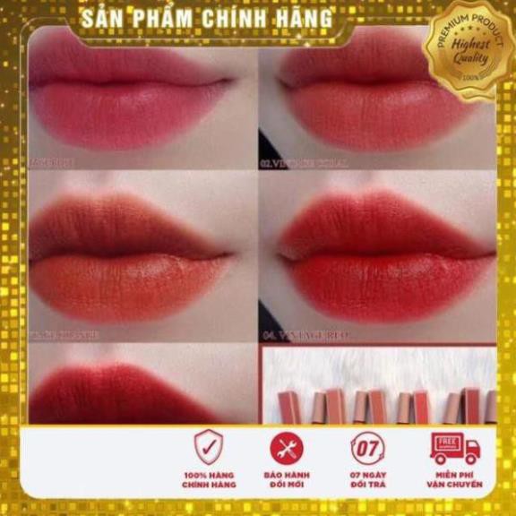 Thương hiệu: Bbia Xuất xứ: Hàn Quốc BBIA là một thương hiệu mỹ phẩm Hàn Quốc nổi tiếng với những sản phẩm mỹ phẩm, trang điểm chất lượng tốt mà giá cả rất bình dân. Cơn sốt BBIA chính thức được gọi tên khi hãng tung ra dòng son BBIA Last Lipstick với ba phiên bản rất đặc biệt. ĐỘ BÁM MÀU VÀ CHẤT SON: - Son Kem Bbia Last Velvet Lip Tint có vẻ tan ít trong nước. Nếu ăn nhẹ nói khẽ thì son còn tầm 90%, nếu ăn thùng uống vại thì son trôi tầm 40%. Nói chung cũng tùy từng màu, nếu cả ngày kiên quyết giảm cân thì có thể yên tâm là son giữ được ít nhất 8 tiếng. - Mang đậm phong cách màu sắc của những cánh hoa. Chất son lên môi cực kì mịn cùng với độ bám màu siêu khủng. Dù là son lì nhưng khi lên môi bạn sẽ cảm thấy được độ mịn như nhung của sản phẩm. Đồng thời không hề có cảm giác là khô môi hay bị lộ vân môi nhé. - Giữ màu được 5 – 6 tiếng (nếu không ăn uống gì) Đặc biệt là sau khi son bị trôi đi thì vẫn giữ lại lớp nền đều màu chứ không loang lổ. - Về màu sắc thì đi theo phong cách màu sắc của những cánh hoa. Kết hợp với xu hướng thời thượng hiện này. Bbia đã cho ra với dòng version 3 và 4 gồm những màu hot nhất hiện nay. BẢNG MÀU: #11 – Calm Boss (hồng nâu): Review son BBIA Velvet Lip Tint ver 3: chất son mềm, bám môi cực tốt - BlogAnChoi.commàu hồng pha chút đỏ nâu nhã nhặn, lịch sự có thể sử dụng hằng ngày đi học đi làm. #12 – Sweet Boss (cam đỏ): cam pha nâu đỏ, màu cam hơi tươi hơn nên phù hợp với khuôn mặt đã trang điểm kỹ phần mắt nhé! #13 – Serious Boss (cam đào): màu đào đất dễ dùng, phù hợp với nhiều tone da. #14 – Chill Boss (đỏ cam): đỏ pha ánh cam, làm bật vẻ trắng sáng của răng, đánh lòng môi cũng rất xinh. #15 – Egde Boss (đỏ lạnh): màu son đỏ quyến rũ nhất trong 5 màu, nên thích hợp với các cô nàng cá tính trong các dịp lễ, tiệc và nhất là phù hợp với Noel 2017 sắp tới nữa. #16 – More Graceful: Đẹp hơn hoa, màu hồng sáng nhẹ nhàng. #17 – More Pleasant: Ngọt ngào hơn hoa, màu coral red đáng yêu duyên dáng. #18 – More Cheerful: Tươi tắn hơn hoa, hồng đào mong manh. #19 – More Dazzling: Ấn tượng hơn hoa, đỏ hoa sơn trà quyến rũ. #20 – More Mature: Sâu sắc hơn hoa, đỏ đậm kích thích cảm xúc mạnh mẽ #21 - Hồng Nude: Nhẹ nàng nhưng không sến, màu son nhạt lại dần sau khi son chuyển sang dạng Matte. Các bạn theo style nhẹ nhàng đi học hay đi chơi thì màu này là lựa chọn hoàn hảo nha <3 Khá tây đó #22 là cam nude nên rất dễ mix màu son, ngay cả khi bạn cho ít màu đỏ của 23 vào thì sẽ tạo ra một màu nâu đỏ duyên dáng thực sự #23 - Cam đất pha đỏ: Tone màu hoàn toàn mới mẻ, thích hợp mọi loại da, nếu môi bạn cứ dùng son đỏ nhưng lại chuyển sang hồng thì đây sẽ là màu son "cứu cánh". #24 - Đỏ đất: Tone màu được "săn lùng" nhiều nhất năm 2018 vì độ tôn da và làm sáng răng. #25 - màu đỏ Burgundy, nâu đậm là một màu sắc có vẻ rất thích hợp cho mùa đông