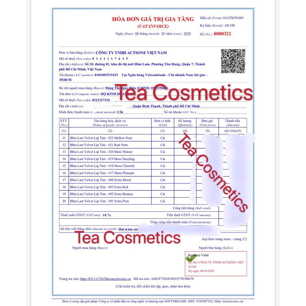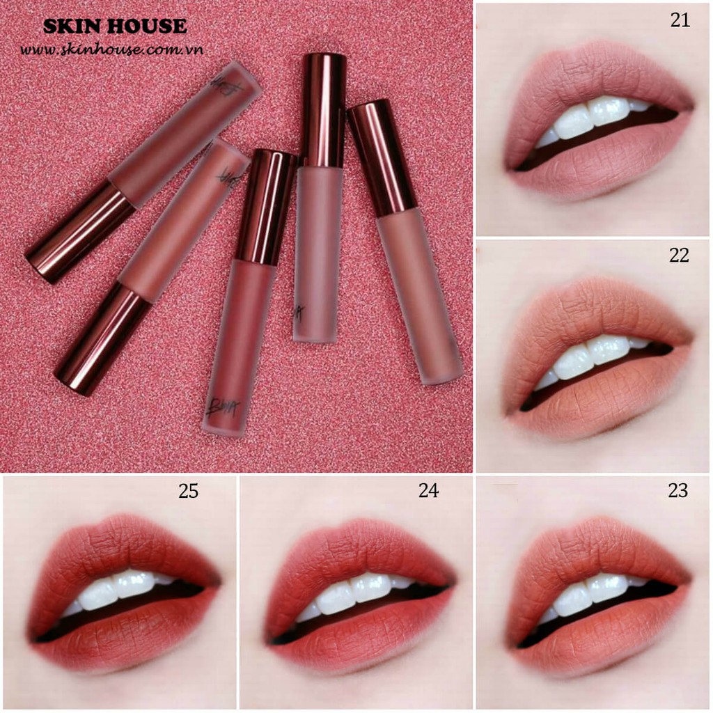 Son Kem Lì Bbia Last Velvet Lip Tint Thương hiệu: Bbia Xuất xứ: Hàn Quốc -Bbia cực kỳ nhanh nhạy khi nắm bắt xu hướng màu son hot nhất hiện nay với bảng màu vô cùng thời thượng. Dù bạn có tông da như thế nào hay theo phong cách makeup ra sao cũng sẽ chọn được ít nhất một màu ưng ý.. -Đầu cọ dễ lấy son và tán đều lên môi. Phần nắp dài cầm chắc tay, dễ sử dụng. Là sự kết hợp của tint và velvet nên đánh lòng môi hay full môi đều rất đẹp, chất son mềm và mịn nên dễ dàng tán đều trên môi - Giữ màu được 5 – 6 tiếng (nếu không ăn uống gì) Đặc biệt là sau khi son bị trôi đi thì vẫn giữ lại lớp nền đều màu chứ không loang lổ..... *** Bảng màu nhà Tea Cosmetics gồm: Màu #01 Extra Pure : màu hồng be Màu #02 Extra Bounce ( màu đỏ coral) : màu đỏ cam Màu #03 Extra red : đỏ cổ điển Màu #04 Extra mood : (màu đỏ cam nhưng so với màu #02 thì ít đỏ hơn nhé) Màu#11-Calm Boss (hồng nâu) : màu hồng pha chút đỏ nâu nhã nhặn, lịch sự có thể sử dụng hằng ngày đi học đi làm. Màu#12-Sweet Boss (cam đỏ): cam pha nâu đỏ, màu cam hơi tươi hơn Màu#13-Serious Boss (cam đào): màu đào đất dễ dùng, phù hợp với nhiều tone da. Màu#14 Chill Boss : ( Màu đỏ với base cam), đánh lòng môi rất xinh, hợp trend và cực kì nổi bật. Phù hợp các bữa tiệc khi đánh full môi, khi đánh lòng môi lại rất xinh xắn. Màu son phù hợp với nhiều màu da nhé, không trang điểm cũng đẹp nhé. Màu#15 Edge Boss: (Màu đỏ base hồng, )màu này phù hợp với các buổi tiệc, đảm bảo các bạn sẽ cực nổi bật luôn đó. Nếu không trang điểm thì bạn chỉ cần đánh nhạt và lòng môi thì rất tuyệt lun nha. Màu #17 More Pleasant : (Cam san hô) màu rất siêu đẹp,trẻ trung, năng động có thể sử dụng hằng ngày, đi học hoặc đi làm tuy nhiên chỉ phù hợp với các bạn da trắng và có trang điểm Màu #18 More Cheerful : (Hồng tươi) màu này khi đánh lên môi chắc hẳn sẽ tươi tắn cả ngày, bánh bèo vô đối luôn nha. Tuy nhiên sắc hồng của em này thì không hợp với các bạn da ngăm. Màu #19 More Dazzling : (màu đỏ hồng sen) màu son cực đẹp và sang chảnh, lên môi cực kì tôn da tuy nhiên vẫn khá kén da. Chỉ thích hợp với các bạn da trắng Mmàu #20 More Mature: (đỏ đất) màu son này hợp với mọi tông da và mọi cách đánh, lòng môi xinh xinh mà full môi thì sexy quyến rũ Mmàu #21 – Documentary Courtesy: (hồng nude) Màu#22: _(Cam beige) Màu #23: màu cam pha trộn chút nâu khá đẹp, Màu # 24 : màu nâu đỏ, lại có pha thêm một ít hồng nhưng không nhiều tạo nên một màu trên môi sâu và đẹp. Phù hợp với nhiều màu da Bạn có thể đánh lòng môi và full môi đều rất đẹp. Màu # 25 :Là màu đỏ Burgundy, nâu đậm rất thích hợp cho mùa đông, phù hợp nhiều màu da. Tuy nhiên, màu khá trầm nên sẽ không thích hợp với các buổi tiệc về đêm sẽ làm bạn không nổi bật. Khi đánh màu này thì nếu đánh full môi sẽ làm bạn trở nên chín chắn hơn nên các bạn chú ý nhé. #bbia #sonkem