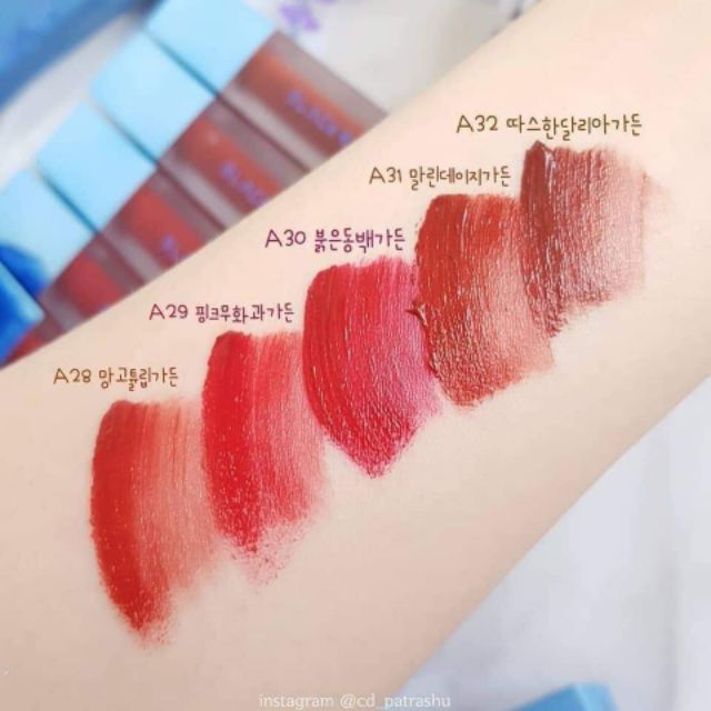 #Gom_order #Blackrouge_ver6 Em nó chính thức mở bán Em gom free công cho các chị em nhé 💙 𝓐𝓲𝓻 𝓕𝓲𝓽 𝓥𝓮𝓵𝓿𝓮𝓽 𝓣𝓲𝓷𝓽 𝓥𝓮𝓻 6 𝓑𝓵𝓾𝓮𝓶𝓲𝓷𝓰 𝓖𝓪𝓻𝓭𝓮𝓷 💙 Lại vẫn là vỏ xanh mê hoặc hot trend của 2020. Ver6 của Black rouge với packing khác biệt lấy cảm hứng từ khu vườn hoa xinh xắn. 5 màu son là 5 sắc hoa khác biệt, tạo nên những gam màu sống động mới mẻ ✨ 👀 Hãy rinh ngay cho mình bộ sưu tập đownb của Trendy 2020 nhé các bạn: 🔹A28 - Mango Tulip Garden: Cam tulip ánh vàng quyến rũ 🔹A29 - Pink Hibiscus Garden: Đỏ hồng hibiscus tone lạnh 🔹A30 - Red Camellia Garden: Đỏ hoa trà kiêu hãnh 🔹A31 - Dry Daisy Garden: Đỏ nâu trầm cuốn hút 🔹A32 - Warm Dahlia Garden: Nâu đất trendy tone ấm