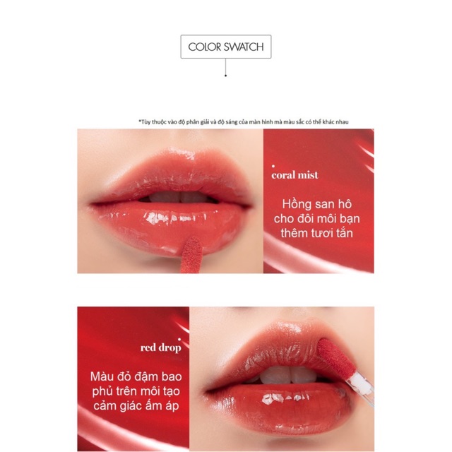 [HOT NEW ARRIVAL 2019] SON TINT NƯỚC SIÊU LÌ, CỰC KÌ LÂU TRÔI ROMAND GLASTING WATER TINT MỚI TOANH CÙNG VỚI 6 TÔNG SON MLBB THỜI THƯỢNG, LỚP BÓNG LẤP LÁNH TÁCH RỜI LỚP MÀU SIÊU XỊN 🍓🍓🍓 🍓Thiết kế dáng trụ tròn quen thuộc của Romand, vỏ nhựa bóng đơn giản cùng với nắp vặn trong suốt độc đáo, tổng thể thỏi son rất hài hoà, trong sáng nhưng cũng không hề kém phần tinh tế. 🍓Kết cấu water tint (chất son tint nước) trong suốt pha trộn với lớp màu son nhưng vẫn dễ dàng nhìn thấy 2 lớp tách biệt, sự kết hợp độc đáo này mang lại một hiệu ứng màu sắc cực kì hấp dẫn, bắt sáng hiệu quả trên đôi môi, độ dưỡng ẩm cao không gây khô môi hay cảm giác bết dính, giúp môi căng mọng ngọt ngào, lấp lánh mịn màng như mặt hồ nước trong suốt. Độ giữ màu siêu đỉnh, khi lớp bóng trôi đi mất, lớp màu son vẫn còn nguyên vẹn. 🍓Bảng màu bao gồm 6 tông màu thiên hướng nhẹ nhàng, chủ yếu là những daily-tone nhưng vẫn có nét thời thượng, các sắc tố trầm lạnh có trong mỗi màu son góp phần giúp cho màu son tôn da hơn, không kén tông da khi sử dụng. 🍓rom&nd Glasting Water Tint 2019: • 01 CORAL MIST (san hô trầm) • 02 RED DROP (đỏ đất) • 03 BRICK RIVER (cam gạch) • 04 VINTAGE OCEAN (nâu đỏ) • 05 ROSE SPLASH (hồng nâu) • 06 PURPLE SHOWER (tím mận) Trọng lượng: 4gr Thương hiệu: ROMAND Xuất xứ: Hàn Quốc