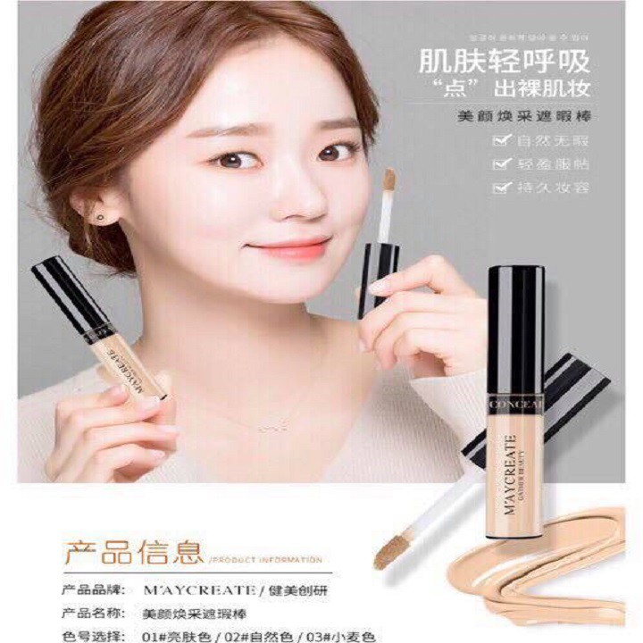Mỹ phẩm Maycreate được triết xuất từ các thành phần thiên nhiên hướng đến sự thân thiện cho làn da. Mới đây hãng cho ra sản phẩm che khuyết điểm Maycreate với độ che phủ cao giúp che phủ các bết tàn nhan, bết thâm mắt. Thiết kế cây che khuyết điểm maycreate như một cây bút, nhỏ gọn. Dễ dàng mang theo. Đầu cọ được bát nghiêng giúp việc chấm kem lên da dễ hơn và kiểm soát được lượng kem cần lấy. Chất kem đặc có thể che được nhiều khuyết điểm trên da. Kem che khuyết điểm Maycreate không gây ra tình trạng da bị mốc, độ kiểm soát nhờn cao. #maycreate #kemchekhuyetdiem #caychekhuyetdiem