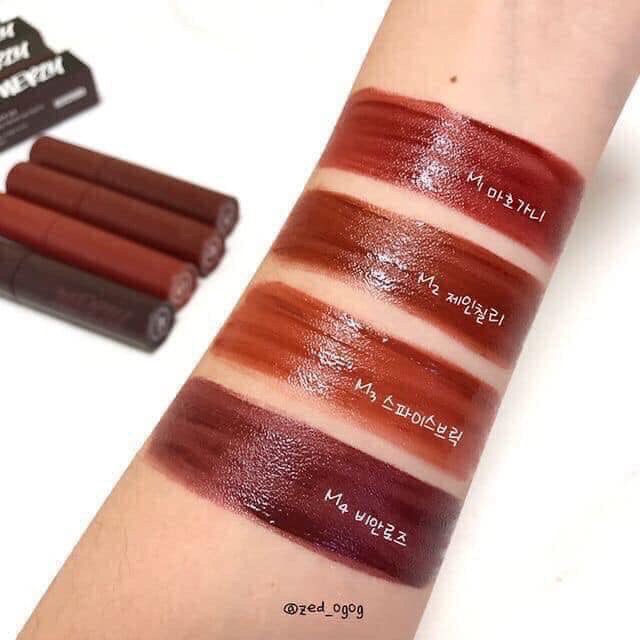 💄MERZY XUẤT CHIÊU - LÀM FAN PHÁT SỐT !!! 💄Bảng màu son Merzy gây chấn động vì đẹp như mơ - “có 1 không 2” ❤️ 𝗠𝗲𝗿𝘇𝘆 𝗕𝗶𝘁𝗲 𝗧𝗵𝗲 𝗕𝗲𝗮𝘁 𝗠𝗲𝗹𝗹𝗼𝘄 𝗧𝗶𝗻𝘁 👉🏻 Phiên bản son kem mới nhất được ra mắt vào tháng 9/2019. 👉🏻 VỎ SON: đc thiết kế màu sắc đặc trưng giống với tone son bên trong, toát lên vẻ xịn xò và rất sang. 👉🏻 ĐẦU CỌ: thiết kế hình chiếc lá có lỗ khoét ở giữa để điều chỉnh lượng son một cách dễ dàng. 👉🏻 CHẤT SON: kem lỳ mịn mượt, không quá đặc, lướt nhẹ trên môi, cảm giác môi sẽ mịn mượt ngay khi chạm son. 👉🏻 KHẢ NĂNG LÊN MÀU: cực kỳ chuẩn, siêu xịn. Bảng màu khiến các cô gái đau đầu, vì màu nào cũng xuất sắc !! 💋 M1 - Đỏ đất thiên đỏ. 💋 M2 - Đỏ nâu. 💋 M3 - Cam nâu. 💋 M4 – Đỏ mận