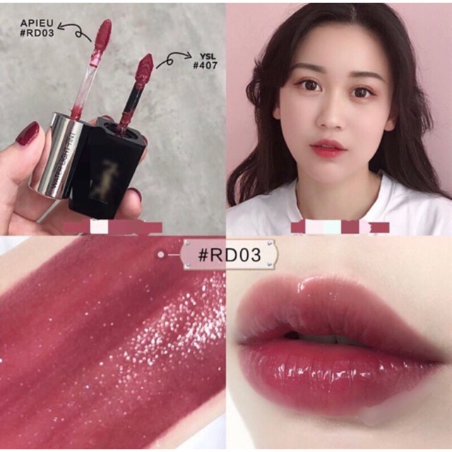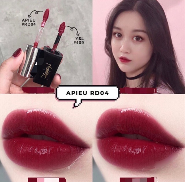 Tint A'pieu Water Light Tint Em này được so sánh ko kém gì YSL. Rẻ đến giật mình mà chất son + màu son Apieu chả kém cạnh Có sẵn RD03, RD04