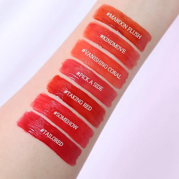 • Thương hiệu: 3CE • Xuất xứ: Hàn Quốc • Dung tích: 3.5g - Tín đồ son bóng không thể bỏ qua em này đâu ạ. - Các tone son luôn được nhà 3CE cho ra lò những gam màu hot nhất, hợp trend nhất nên luôn khiến các chị em điêu đứng. - Chất son em này dạng tint bóng, siêu lì, bám màu siêu tốt, đủ chuẩn cho 1 cây son mùa hè. • Đặc trưng: - Bao bì nhựa trong suốt và dễ nhìn thấy màu son bên trong, nhìn từ xa có thể thấy thân son phản chiếu lấp lánh rất xinh - Chất son tint dạng gel nước, khi thoa lên môi có cảm giác rất dễ chịu, nhẹ môi, độ bám màu cao, giữ màu lâu trong thời gian dài • Đối tượng sử dụng: - Dành cho những bạn muốn tìm một sản phẩm trang điểm môi cho môi căng mọng - Dành cho những bạn muốn tìm dòng son có dưỡng ẩm cho môi mềm mượt - Dành cho những bạn muốn tìm màu son tươi tắn, mọng nước, mang sức sống cho đôi môi *****Bảng màu gồm 7 tone cho các nàng lựa: #Kind Move : Cam đất #Maroon Flush(Cam đỏ đất) #Pick A Side(Hồng cam) #Somehow( Hồng đỏ) #Tailo Red (Đỏ lạnh) #Taking Red(Đỏ cam gạch) #Vanishing Coral Cam đào