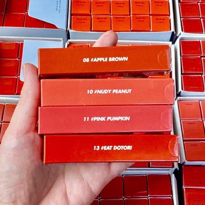 🍓SON TINT LÌ CHO MÙA HÈ NĂNG ĐỘNG ROMAND JUICY LASTING TINT PHIÊN BẢN NÂNG CẤP 2019 VÀ 3 MÀU MỚI. 🍓Thiết kế của thỏi son Romand Juicy Lasting Tint có vẻ không có gì lạ lẫm, mới mẻ, chắc hẳn các bạn đã gặp nhiều lần, vỏ nhựa và vỏ hộp giấy bên ngoài đồng bộ với màu son bên trong và trên vỏ được in mã số màu giúp chị em có thể nhận dạng nhanh hơn. 🍓Romand Juicy thuộc dòng son tint nên chất son lỏng và bóng tạo cảm giác căng mọng ngọt ngào cho đôi môi, chất son dễ tán, màu son lan đều chỉ cần một lần nhúng cọ, chất son mềm mịn trên môi và đặc biệt là không bị vón cục. 🍓Độ bền màu từ 8-10 tiếng, nếu tô đậm hơn sẽ có thể giữ màu lâu hơn nữa. Juicy Lasting Tint có tổng cộng 9 màu, các màu son được đặt theo tên các loại trái cây mùa hè, bảng màu son thiên về các tông màu năng động và tươi tắn. 🍓Shop có sẵn 9 màu siêu hot: • 01 JUICY OH! • 02 RUBY RED • 03 SUMMERSCENT • 04 DRAGON PINK • 05 PEACH ME • 06 FIGFIG • 07 JUJUBE • 08 APPLE BROWN • 09 LICHI CORAL Trọng lượng: 5.5gr Thương hiệu: ROMAND Xuất xứ: Hàn Quốc