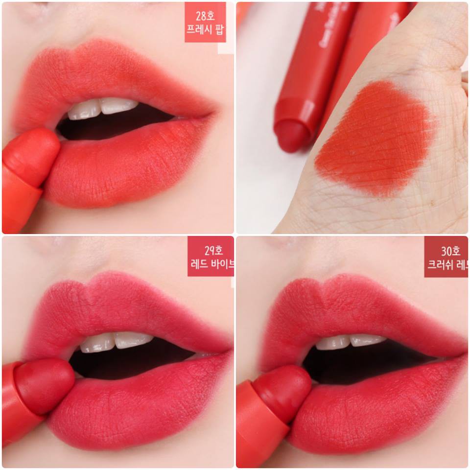 SON BÚT CHÌ MAMONDE CREAMY TINT COLOR BALM INTENSE Xuất xứ: Hàn Quốc Thương hiệu: Mamonde - Mamonde Creamy Tint Color Balm Intense với nhiều cải tiến nổi bật từ thiết kế đến chất son cực mịn, khả năng lên màu siêu chuẩn. - Thành phần chính chiết xuất từ tinh dầu hoa tầm xuân, tinh dầu hoa jojoba, sáp ong và nhiều dưỡng chất có lợi khác. - Là dòng son 3 trong 1: kết hợp hoàn hảo giữa tính tiện lợi của son thỏi, màu sắc trẻ trung của tint và độ dưỡng cao của balm. Son lướt trên môi cực mướt. - Mùa hè năm nay, Mamonde không những đã "thay áo" cho dòng son bút chì Creamy Tint Color Balm Intense mà còn bổ sung thêm một số màu cực kỳ tươi tắn. Bảng màu gồm 20 màu sắc cực đẹp.