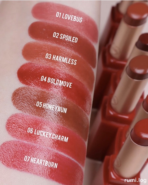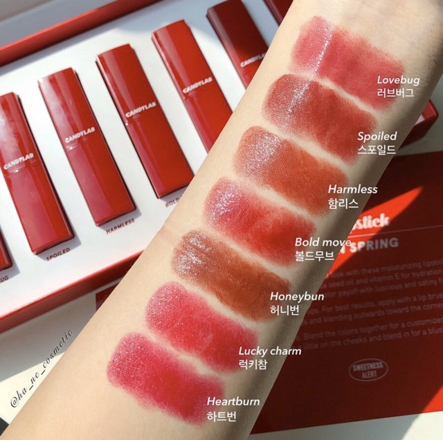 🍭 𝘾𝙖𝙣𝙙𝙮𝙡𝙖𝙗 ~ Phòng Thí Nghiệm Những Viên Kẹo Ngọt 🦋 𝑪𝒂𝒏𝒅𝒚𝒍𝒂𝒃 𝑺𝒂𝒕𝒊𝒏 𝑳𝒊𝒑𝒔𝒕𝒊𝒄𝒌 𝑳𝒐𝒗𝒆 𝑰𝒏 𝑺𝒑𝒓𝒊𝒏𝒈 𝑬𝒅𝒊𝒕𝒊𝒐𝒏 🦋 ________________________ 🌸 Phiên bản đặc biệt Spring Edition của nhà Candy Lab tung ra cho hội chị em đam mê son được chiêm ngưỡng nè 😍 ⭐️ Son có thành phần dưỡng ẩm tạo nên lớp che phủ mịn màng nhưng vẫn glow nhẹ tự nhiên và đủ ẩm mượt cho bề mặt môi ⚡️Thỏi son tựa sự ngọt ngào của mùa xuân bao phủ lấy đôi môi xinh đẹp của bạn ⚡️Thỏi son 4in 1: Lipstick + Lip glow + Lip balm + Lip essence ⚡️Đôi môi được giữ ẩm và màu sắc lên màu rõ ràng và sống động với kết cấu satin mềm mượt và ẩm mịn, không gây khô môi cho hiệu ứng đôi môi căng mọng ⚡️Bảng màu ngọt ngào với đầy đủ các màu từ sắc hồng cho đến đỏ tươi: • 01 LOVEBUG: Hồng đào tựa như một đóa hồng ngọt ngào • 02 SPOILED: Cánh hồng khô nhẹ nhàng, nữ tính • 03 HARMLESS: Tone màu nâu gạch hài hòa, lãng mạn • 04 BOLD MOVE: Đỏ tươi xinh xắn và rực rỡ • 05 HONEYBUN: Đỏ nâu huyền bí và lôi cuốn • 06 LUCKY CHARM: Đỏ hồng tươi tắn và đáng yêu • 07 HEARTBURN: Hồng tươi trẻ trung và nổi bật