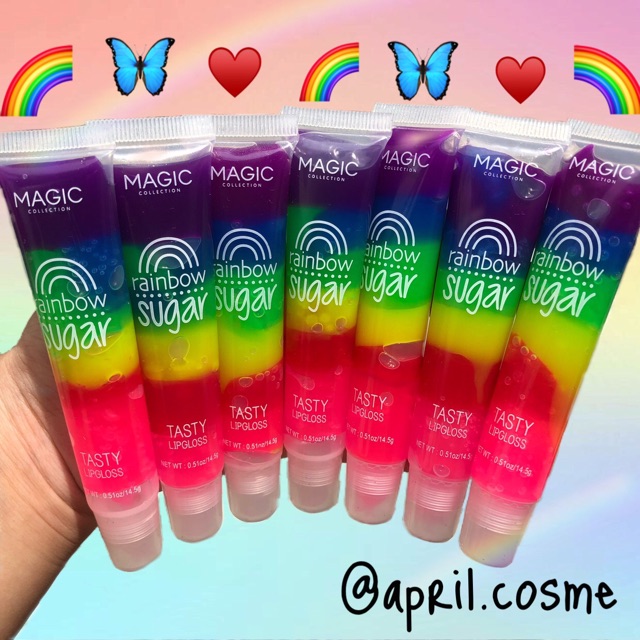 🌈RAINBOW LIPGLOSS🌈 🔥CÓ SẴN🔥 ▪️Chiếc lipgloss thiết kế màu sắc khá bắt mắt luôn, tuýp to lắm. Thơm mùi kẹo ngọt ▪️Dòng son bóng này ko quá bị dính nhưng vẫn có được độ bóng xinh eo lắm nha ▪️Còn có thể dùng như son dưỡng môi luôn nè. ▪️Đánh một lớp son rồi chồng em này lên là môi căng mọng xinh lắm ý💋 ▪️Giá chỉ có 65k/1 baby thoiii