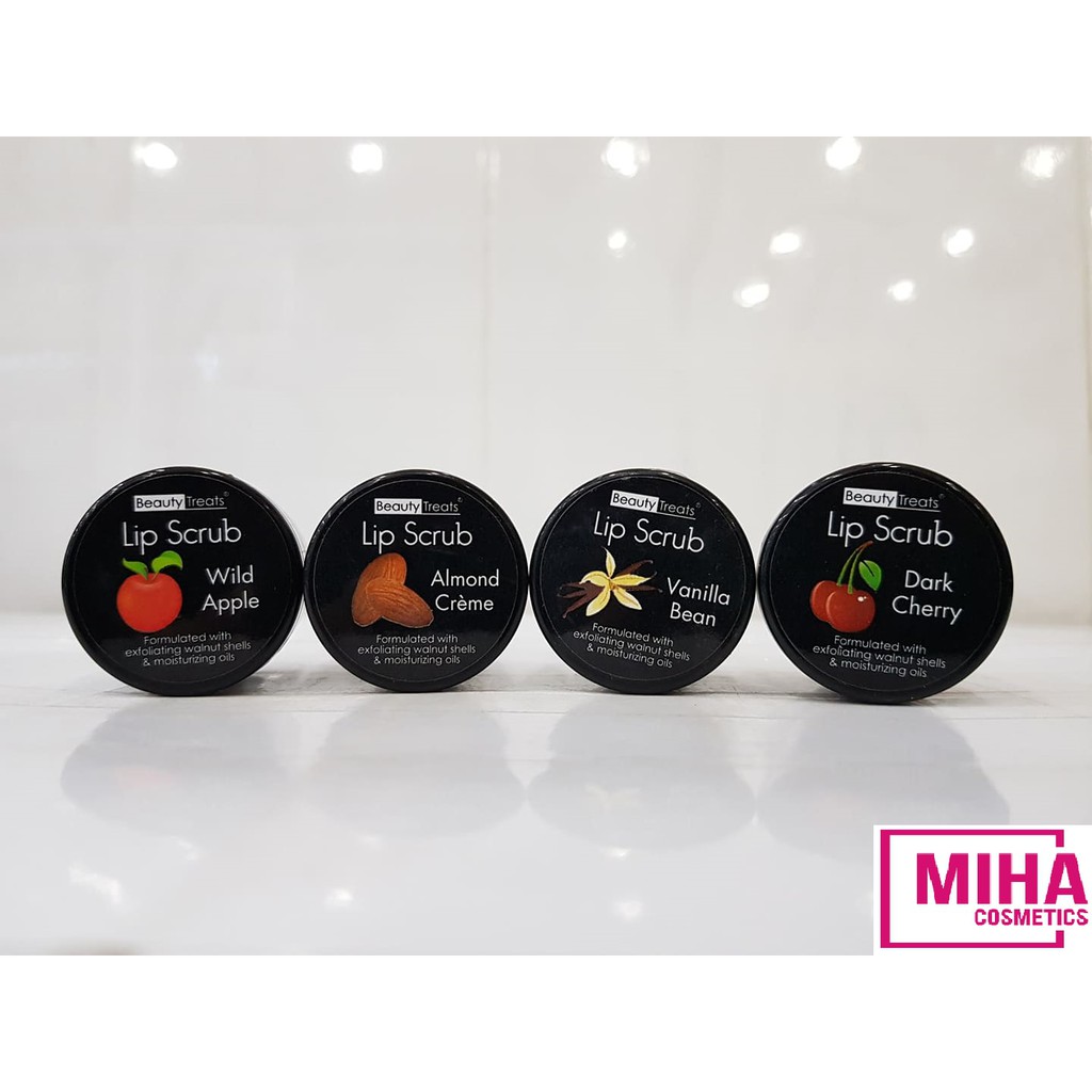 -Beauty Treats Lip Scrub – tẩy tế bào chết cho môi với kết cấu dạng hạt nhỏ giúp tẩy sạch lớp da chết sần sùi hay những lớp son trang điểm còn sót lại một cách nhẹ nhàng mang đến cảm giác mịn màng, ngọt ngào cho đôi môi của bạn -Tẩy da chết Lip Scrub nuôi dưỡng làn môi bằng Vitamin E, Bơ Hạt Mỡ, cùng với các thành phần chiết xuất trong quả Lê, quả Nho, hạt dầu Jojoba, và Sáp Copernicia Cerifera làm môi mềm mượt, tươi tắn và tràn đầy sức sống, mang lại cho bạn một bờ môi căng mọng lên màu son đẹp nhất có thể. -Vì sao ta phải tẩy tế bào chết cho môi? Khi môi bị khô hay sau khi ngủ dậy thì trên môi thường đọng lại những tế bào chết hay da khô trên môi cũng như xung quanh vành môi, gây mất thẩm mỹ cũng như sẽ làm cho khi ta trang điểm thì màu son không thấm đều lên môi, tạo cảm giác bị nhếch nhác. Do vậy 1 tuần khoảng 2 hay 3 lần thì chúng ta nên tẩy tế bào chết cho môi một lần để bảo vệ và tăng hiệu quả trang điểm cho đôi môi của mình. -Tẩy tế bào chết cho môi: Lấy 1 ít son thoa đều lên môi và vành môi, sau đó massage nhẹ theo hình dạng xoắn ốc trong khoảng 1 phút cho đến khi các hạt đường cát tan đều trên môi. Sau đó lấy khăn giấy lau sạch hoặc rửa lại với nước là bạn sẽ có 1 đôi môi sạch sẽ và căng mọng. Tiếp theo bạn có thể thoa son dưỡng môi cho đôi môi thêm đẹp. 1 tuần có thể tẩy tế bào chết cho môi cho môi 2 hay 3 lần. * Lưu ý là sau khi tẩy tế bào chết các bạn phải thoa ngay một lớp son dưỡng vì lúc này lớp da mới rất mỏng và cần được bảo vệ.