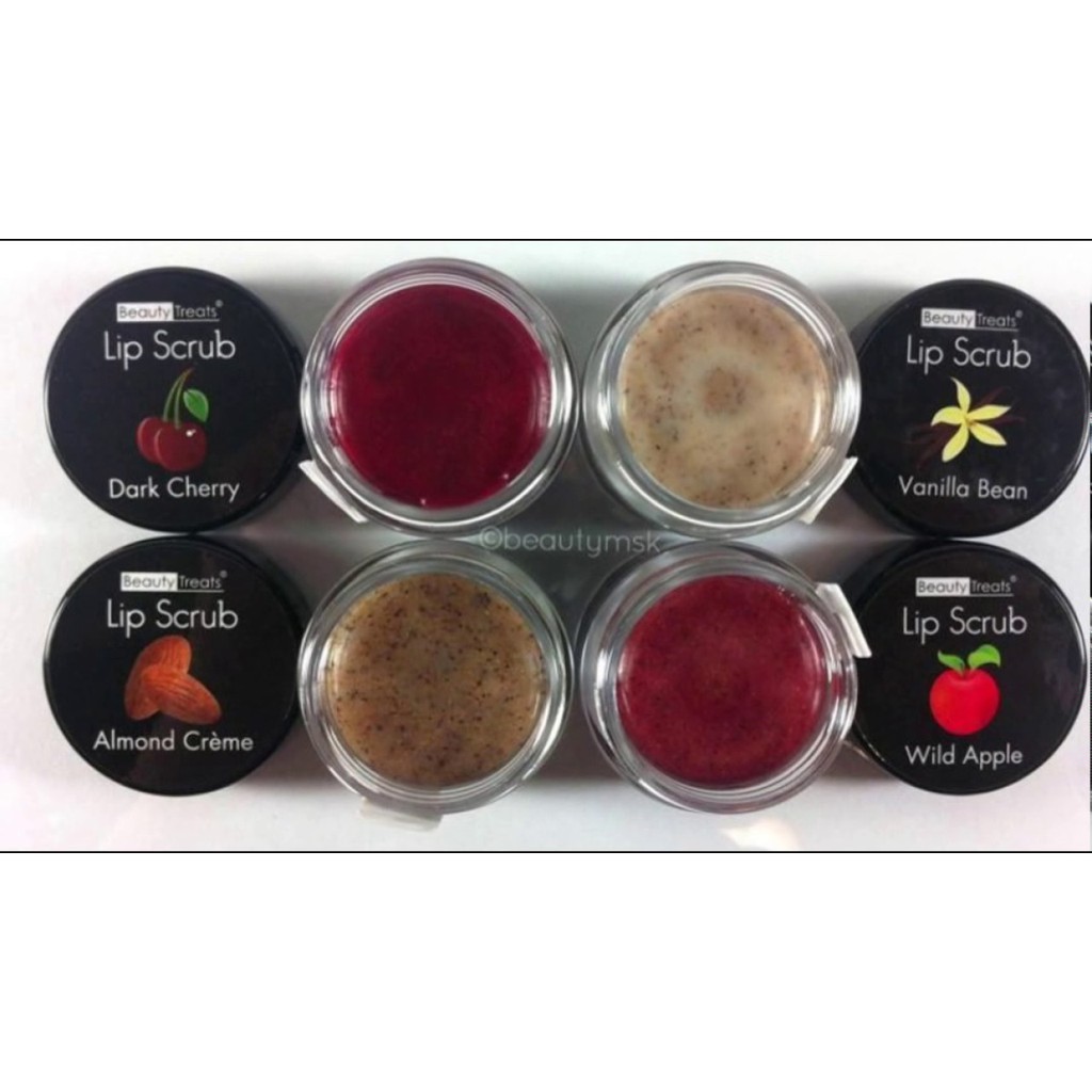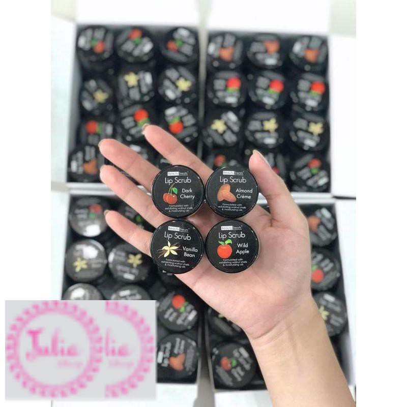 Tẩy tế bào chết ở môi - Beauty Treats - Lip Scrub 10.5g – tẩy tế bào chết cho môi với kết cấu dạng hạt nhỏ giúp tẩy sạch lớp da chết sần sùi hay những lớp son trang điểm còn sót lại một cách nhẹ nhàng mang đến cảm giác mịn màng, ngọt ngào cho đôi môi của bạn. Tẩy da chết Lip Scub nuôi dưỡng làn môi bằng Vitamin E, Bơ Hạt Mỡ, cùng với các thành phần chiết xuất trong quả Lê, quả Nho, hạt dầu Jojoba, và Sáp Copernicia Cerifera làm môi mềm mượt, tươi tắn và tràn đầy sức sống, mang lại cho bạn một bờ môi căng mọng lên màu son đẹp nhất có thể. - Được thiết kế dạng hũ nhỏ nhắn màu đen sang trọng, cầm vừa tay rất tiện lợi cho các bạn mang theo mọi lúc mọi nơi. Khi môi bị khô hay sau khi ngủ dậy thì trên môi thường đọng lại những tế bào chết hay da khô trên môi cũng như xung quanh vành môi, gây mất thẩm mỹ cũng như sẽ làm cho khi ta trang điểm thì màu son không thấm đều lên môi, tạo cảm giác bị nhếch nhác. Do vậy 1 tuần khoảng 2 hay 3 lần thì chúng ta nên tẩy tế bào chết cho môi một lần để bảo vệ và tăng hiệu quả trang điểm cho đôi môi của mình. Hướng dẫn sử dụng: - Tẩy tế bào chết cho môi: Lấy 1 ít son thoa đều lên môi và vành môi , sau đó massage nhẹ theo hình dạng xoắn ốc trong khoảng 1 phút cho đến khi các hạt đường cát tan đều trên môi. Sau đó lấy khăn giấy lau sạch là bạn sẽ có 1 đôi môi sạch sẽ và căng mọng nhé . Tiếp theo bạn có thể thoa son dưỡng môi cho đôi môi thêm đẹp. 1 tuần có thể scrub cho môi 2 hay 3 lần. - **** Lưu ý là sau khi tẩy tế bào chết các bạn phải thoa ngay một lớp son dưỡng vì lúc này lớp da mới rất mỏng và cần được bảo vệ.