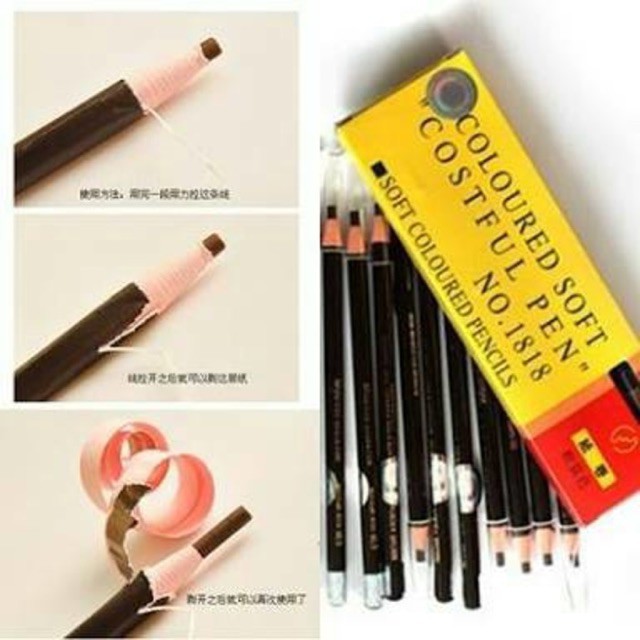 Chì bóc định hình khuôn lông mày Chì bóc được sử dụng rộng rãi trong trang điểm chuyên nghiệp, chì mềm, dễ kẻ. Với 1 sợi chỉ xé giúp bạn dễ dàng gọt bút mà k cần dụng cụ gọt bút chì đi kèm