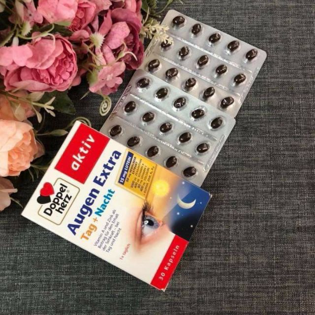 bổ mắt Augen Extra Tag + Nacht Xuất xứ: Hàng xách tay Đức – Mỹ phẩm xách tay Đức Hộp: 30v Giá: 240k - Sỉ onbox Mắt là một trong những cơ quan quan trọng nhất đối với mỗi con người chúng ta. Đôi mắt giúp chúng ta nhìn thấy mọi thứ xug quanh và giúp chúng ta có thêm khả năng làm việc tốt. Tuy nhiên, hiện nay với sức ép công việc cao như phải tiếp xúc với máy tính cả ngày, đi đường thường xuyên... dẫn đến mắt chúng ta sẽ bị ảnh hưởng xấu đi. Để khắc phục tình trạng đó, shop xin giới thiệu tới mọi người sản phẩm mới của Đức giúp hồi phục nhanh chóng cho đôi mắt của bạn, đó là thuốc bổ mắt Augen Extra ngày và đêm. ✦ Công dụng và thành phần: - Vitamin A giúp duy trì thị lực của bạn một cách bình thường. - Kẽm cũng có chức năng giúp duy trì thị tốt và không gây mỏi mắt. - Vitamin B6 giúp cho hệ thần kinh hoạt động minh mẫn. - Vitamin C và E và các yếu tố vi lượng kẽm, đồng góp phần bảo vệ các tế bào, chống lại sự oxy hóa. ✦Hướng dẫn sử dụng: 1 viên/ngày