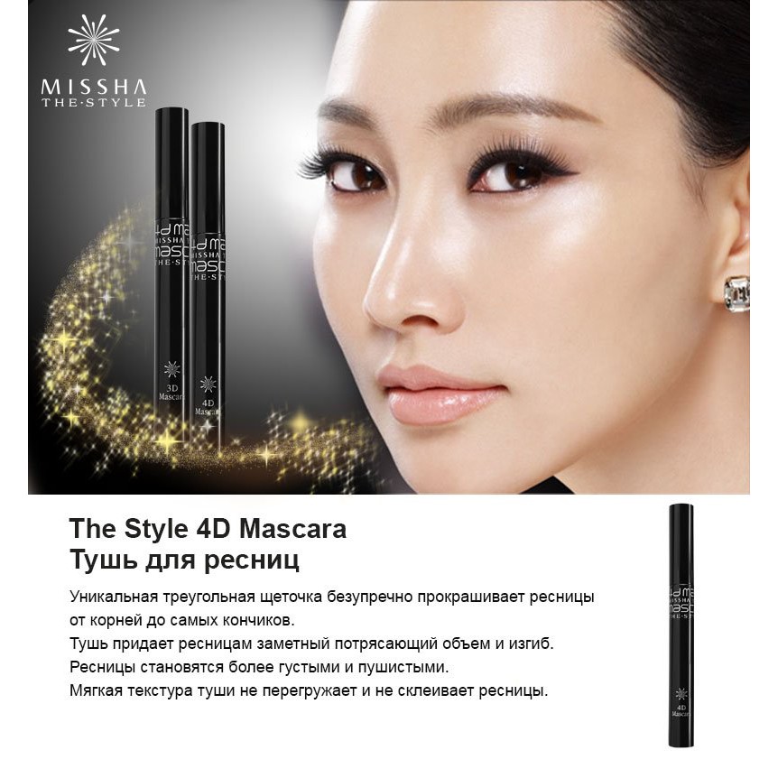 Missha-một trong những hãng mỹ phẩm nổi tiếng tại Hàn Quốc với cam kết 100% các sản phẩm chăm sóc da, tóc, sơn móng, mỹ phẩm của hãng luôn đạt chất lượng tốt nhất. Chải Mi Mascara The Style 4D Missha với công thức 4D giúp mi trở nên dày và dài hơn đồng thời tạo nên sự cuốn hút, hấp dẫn ngay từ cái nhìn đầu tiên