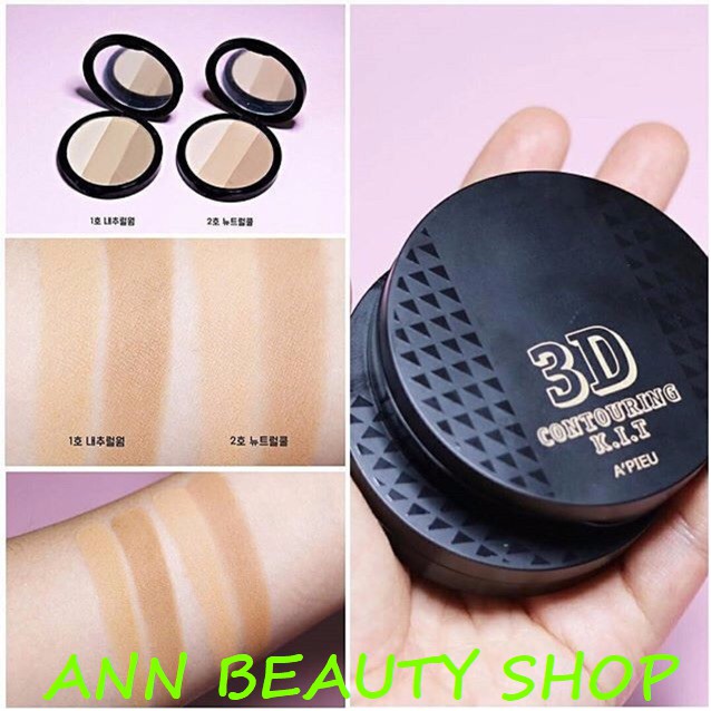 Phấn tạo khối 3 màu tiện dụng của Apieu ANN MUA SALE 50% Có tone #01: cho da sáng và #02: cho da trung bình *** GIÁ 148K/ HỘP ( đã sale 50%) *** A'pieu 3D Contouring Kit là tạo khối với thiết kế dạng bột dễ tán, tiện lợi và dễ dàng điều chỉnh độ đậm nhạt. +Set có 3 ngăn: Highlight - Shading 1 - Shading 2, trong đó 2 ngăn shading là 2 tone màu đậm nhạt khác nhau giúp sử dụng linh hoạt hơn theo từng vùng hoặc từng concept trang điểm, giúp lưu màu lâu bền hơn, blending và dễ chỉnh sửa hơn, thích hợp với cả các nàng mới tập đánh khối. -Phấn có dạng bột siêu mịn, có thể layer thành 2~3 lớp mà không lo bị mốc, dày phấn và tăng khả năng bám màu lâu hơn. -Chứa các thành phần thiên nhiên như chiết xuất hoa sen, các loại khoáng hỗ trợ dưỡng da. LƯU Ý: ĐÂY LÀ TẠO KHỐI DẠNG PHẤN NÊN DỄ BỊ XÊ DỊCH PHẤN TRONG QUÁ TRÌNH VẬN CHUYỂN, ANN BÁO TRƯỚC ĐỂ MN THÔNG CẢM Ạ