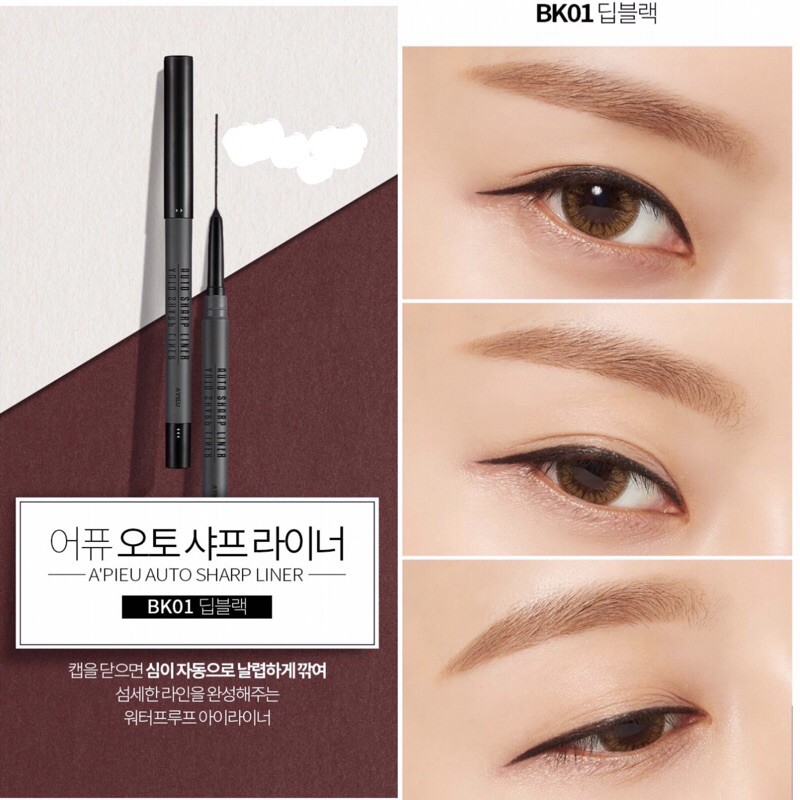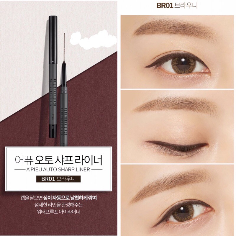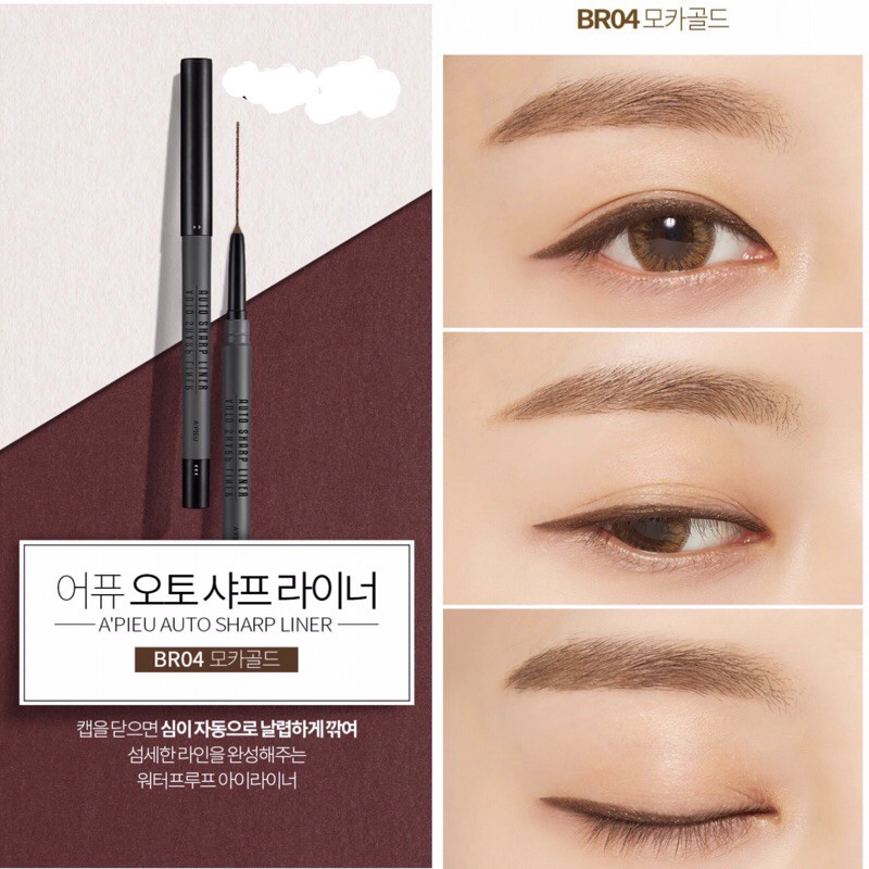 ❌ CHÌ KẺ MẮT CHỐNG TRÔI CỰC ĐỈNH 💢 A'PIEU AUTO SHARP LINER ⚠️ #105k . 🦋 Em này được review cực kì lâu trôi, giữ đường kẻ từ 9h sáng đến 6h tối vẫn y nguyên, đi mưa đi tắm biển, đi bơi thoải mái luôn nhé 😌 CÓ 3 MÀU: #BK01: Đen #BR04 : Nâu ánh kim #BR01: Nâu . 🍑 Em này được ra mắt với khả năng chống thấm nước, chống lem trôi vượt trội, đường kẻ sắc nét, mềm mại dễ kẻ, đặc biệt không bị vón cục như nhiều loại chì kẻ mắt khác . 👉 Thiết kế nhỏ gọn và cực kì đặc biệt là em này có sẵn đầu gọt nằm gọn gàng bên trong nắp bút, chỉ cần mỗi lần dùng xong, các cậu đậy chì vào và xoay xoay vài đường là lại có một đầu chì mới tinh 🤩 👉 Ngoài ra còn có tác dụng dưỡng mí mắt bởi có thành phần vitamin E giúp bảo vệ vùng mí mắt nhạy cảm