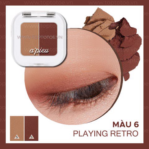 Phấn Mắt 2 Màu A'Pieu Mineral Mono Shadow (Dual) là sản phẩm phấn mắt siêu xinh được đánh giá cao của A'Pieu bởi độ bám màu cũng như độ mịn vô cùng hoàn hảo, có ánh nhũ nhẹ, lên màu rất rõ và chuẩn. Phấn mắt 2 Màu Mineral Mono Shadow Dual hạ gục mọi cô gái ngay từ cái nhìn đầu tiên với thiết kế vô cùng xinh xắn, dễ thương và tiện lợi. Với trọng lượng chỉ vỏn vẹn 2g cho 2 khay phấn, hộp phấn mắt dễ dàng nằm gọn trong lòng bàn tay trông rất đáng yêu. ƯU ĐIỂM: - Kiểu nắp dính bản lề đóng mở giúp kiểm soát sản phẩm dễ hơn trong mỗi lần mang đi xa hoặc để trong túi, bóp để sử dụng. - Chất phấn cực kì đa dạng (lì, bán lì, có ánh nhũ) phù hợp với sở thích và nhiều phong cách trang điểm khác nhau. - Phấn mắt được cấu thành từ những hạt phấn li ti, siêu mềm mịn cùng với các hạt nhũ nhẹ lấp lánh giúp tiệp đều lên bầu mắt mà không sợ bị rơi rớt hay mau xuống tông màu. - Độ bám màu tốt, nhẹ nhàng, tự nhiên nhưng lâu trôi. Các màu sắc cũng được phối rất thời trang và hoàn hảo, phù hợp với nhiều phong cách trang điểm khác nhau, có thể sử dụng riêng lẻ hay mix lại với nhau đều đẹp. - Rất dễ sử dụng nên hoàn toàn có thể dùng hàng ngày, mang lại cho bạn đôi mắt quyến rũ và xinh đẹp cuốn hút mọi ánh nhìn. Thông Tin Thương Hiệu: A'PIEU - một thương hiệu mỹ phẩm tại Hàn Quốc từ lâu nhưng gần đây mới bắt đầu được phái đẹp Việt Nam biết đến và đang ngày càng được ưa chuộng. A'PIEU tạo ấn tượng mạnh bởi thiết kế sản phẩm đơn giản nhưng rất tinh tế hoặc theo concept cực dễ thương, giá thành cực mềm so với nhiều thương hiệu mỹ phẩm khác ***nhưng chất lượng không hề thua kém***. Nhắm tới đối tượng trẻ trung, tự tin, năng động, các sản phẩm từ dưỡng da tới mỹ phẩm của A'PIEU chính là sự lựa chọn hàng đầu cho các bạn trẻ. #PhấnMắt #2Màu #Apieu #Mineral #Mono #Shadow #Dual