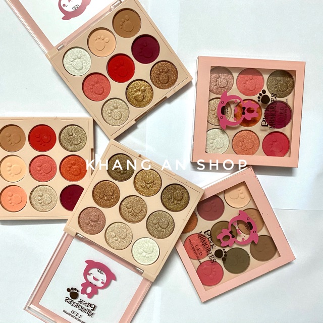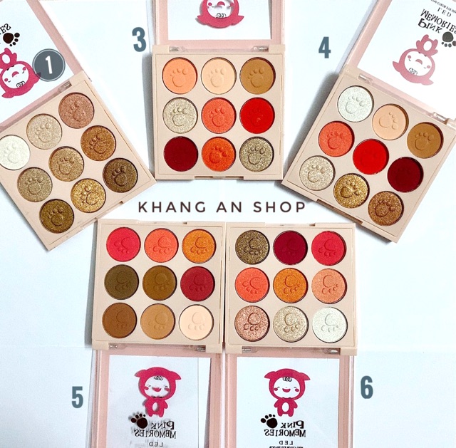 Phấn mắt 9 ô Pink Memories Xuất xứ: nội địa Trung Bảng mắt 9 ô siêu siêu dễ thương luôn ạ. Thấy đẹp là phải khuân ngay về cho các chị em 😘😘😘 Bảng gồm phấn và nhũ, có thể kết hợp phấn mắt và phấn má luôn nha các nàng