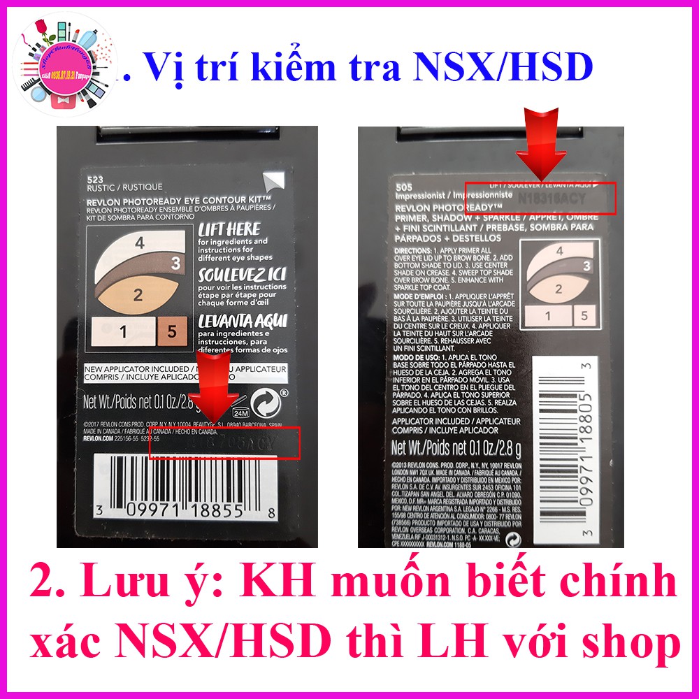 PHẤN MẮT REVLON PHOTOREADY Thương hiệu: REVLON Trọng lượng : 2,8g Xuất xứ: USA PHẤN MẮT REVLON PHOTOREADY Revlon là nhãn hiệu nổi tiếng đã quá quen thuộc với chị em phụ nữ về các loại sản phẩm cho phái đẹp như nước hoa, thuốc nhuộm và đặc biệt là mỹ phẩm trang điểm. Những dòng phấn mắt xuất xứ từ USA vô cùng đa dạng và phong phú, thay vì phải rối mắt và đắn đo với những bảng màu quá nhiều màu sắc thì phấn mắt Revlon Photoready Primer Shadow & Sparkle sẽ giúp bạn tiết kiệm thời gian hơn trong việc lựa chọn màu mắt, thiết kế hộp gồm 5 màu theo tông nude trong 1 hộp nhỏ gọn dễ dàng để trong túi xách mang theo khi ra ngoài,tông màu đang thịnh hành, hợp thời trang bạn sẽ dễ dàng sáng tạo, kết hợp các màu để hợp với từng xu hướng trang điểm khác nhau như sắc xảo, sang trọng hay trẻ trung mà bạn muốn. Thành phần: - Bảng màu bao gồm: kem lót cho mắt (primer), 3 màu phấn mắt và 1 phấn phủ lấp lánh. - Hạt phấn mềm mịn, lâu trôi. - Đảm bảo độ mịn, mỏng, bám dính tốt. - Đơn giản, tiện dụng và cho màu mắt tươi trẻ. - Kết cấu ánh nhũ tăng vẻ đẹp cuốn hút, ấn tượng cho đôi mắt. - Màu sắc thời trang phù hợp với nhiều xu hướng trang điểm khác nhau. - Bảng màu bao gồm: kem lót cho mắt (primer), 3 màu phấn mắt và 1 phấn phủ lấp lánh. Hướng dẫn sử dụng: - Mắt tròn: Thêm một chút phấn ở vị trí trung tâm mí mắt. Sau đó, tán nhẹ về phía đuôi là đã có một đôi mắt long lanh. - Mắt nhỏ: Vẽ một đường dọc theo hốc mắt rồi dùng chổi tán đều từ mũi ra ngoài. Đôi mắt trông sẽ to, tròn hơn. - Mí mắt nhỏ: Đánh phấn theo một đường tròn từ đuôi mắt lên quá đầu mắt. - Mắt dài: Phủ phấn vào 1/3 mí mắt trên về phía đuôi và nên dùng phấn nhũ. Mỗi khi chớp mắt, phấn nhũ sẽ hợp với ánh sáng xung quanh, tạo cảm giác đôi mắt bớt dài. XIN CHÂN THÀNH CÁM ƠN QUÝ KHÁCH ĐÃ QUAN TÂM VÀ ỦNG HỘ SHOP! #Phanmat #phanmatrevlon #phanmatrevlonPhotoready # Revlon # Revlonphotoready #Photoready