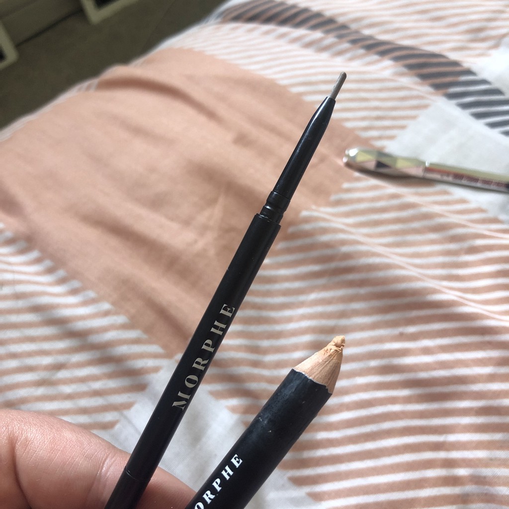 CHÌ KẺ MÀY PHẨY SỢI MORPHE MICRO BROWN PENCIL _Đợt vừa rồi Morphe Sale bé này giá siêu tốt nè CE ui , xịn xò rẻ hơn cả chì Colourpop lun hen . Morphe được cái bao bì đẹp hơn , shade các màu đa dạng hơn , chất creamy hơn Colourpop 1 tí nên các bạn mày mỏng nhạt vẫn có thể bon chen đc hén . _Dạng đầu chì thon phẩy sợi như ABH , chì 2 đầu 1 đầu chải tròn mảnh và 1 đầu chì mảnh giúp shape sợi tạo phom và phẩy giả sợi . H về 3 màu best seller hợp Shade mày châu á nhất nha : _1 : Latte (soft brown with cool undertones) : Màu nâu tone giữa hợp với các bạn tóc nâu – nâu đen , hoặc tóc đen thích mày nhẹ nhàng hen _2 : Mocha (rich brown with warm undertones) : Màu tone Softbrown chuẩn hợp với các bạn tóc nhuộm , tóc nâu nhuộm nhạt – nâu đậm ( nếu thích mày tự nhiên hen ) _3: Chocolate Mousse (soft black with neutral undertones) : Nâu gần đen , màu hợp với các bạn tóc nâu đậm – tóc đen nha , màu nhẹ nhàng không đen mun . _Giá : 155k/bé #makeupnms