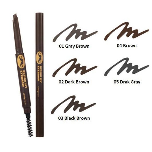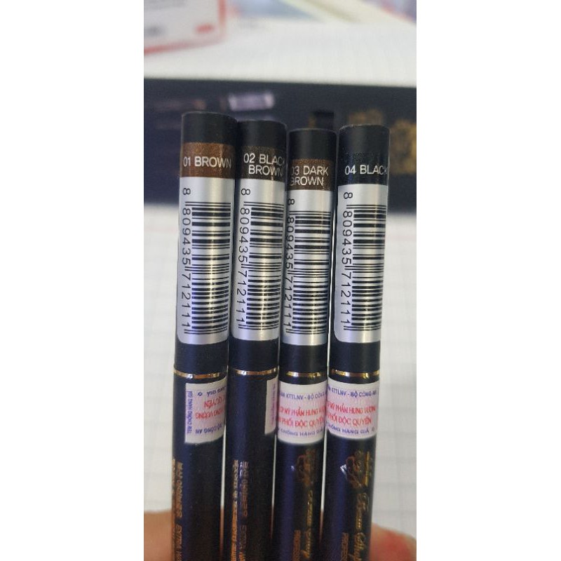là sản phẩm thuộc chì kẻ và tạo dáng chân mày với thiết kế với 2 đầu tiện dụng : 1 đầu là chì kẻ, 1 đầu là cọ chải lông mày, giúp bạn khai thác nhiều tính năng hơn các sản phẩm thông thường thấy trên thị trường.. Hướng dẫn sử dụng để được một đôi chân mày đơn giản mà hiệu quả: Bước 1: Dùng đầu cọ kẻ lông mày, kẻ men theo đường từ đầu lông mày cho đến đỉnh mày khoảng 2/3 chân mày Bước 2: Từ đỉnh lông mày tiếp tục kẻ cho đến hết chân mày (1/3 còn lại) Bước 3: Dùng bút chì nâu kẻ dài lại từ đầu chân lông mày cho đến cuối chân mày. Bước 4: Dùng đầu chuốt lông mày chuốt từ từ đều theo chiều lông mày để tông mày kẻ được đềi đặc và tự nhiên hơn. Màu 01: Gray Brown No.02 Dark Brown (Nâu đậm) No.03 Black Brown (Nâu đen) No.04 Brown (Nâu nhạt)