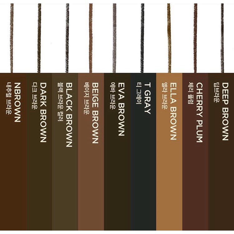 Hiện tớ về 6 màu dòng Easy To Draw Eyebrow của Idonthinkso: • 01 - N Brown • 02 - Dark Brown • 03 - Black Brown • 04 - Beige Brown • 05 - Eva Brown • 06 - T Gray