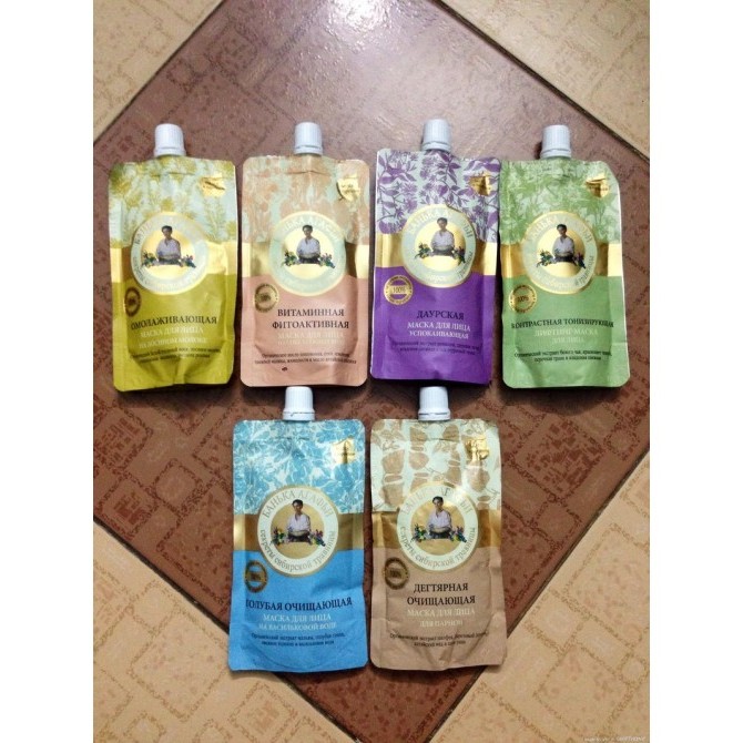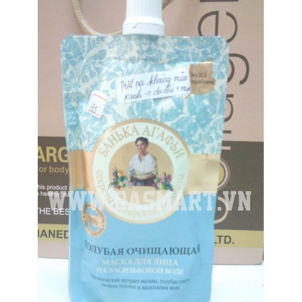 Mặt Nạ Sữa Non Bà Già Nga là dòng sản phẩm chống lão hóa với thành phần từ sữa nai sừng tấm cung cấp chất dinh dưỡng kết hợp với các loại thảo mộc Siberia. Mặt Nạ Bà Già Nga, kem bà già Nga được thiết kế đặc biệt cho trẻ hóa da, giúp da căng mịn, sáng bóng và tươi trẻ. Thể tích thực: 100ml Đắp Mặt : 1 túi sử dụng được khoảng 10-15 lần Đắp Body : 1 túi sữ dụng body được khoảng 3-5 lần 1. Màu vàng chanh: là loại mặt nạ trẻ hóa từ sữa Nai Măt nạ kem từ sữa nai nguyên chất cung cấp độ ẩm cho da, kích thích tái tạo tế bào, cải thiện độ đàn hồi và làm mềm mại da. Sữa Moose dinh dưỡg gấp 4 lần sữa bò có tác dụng làm trẻ hoá mạnh mẽ, giúp da luôn được nuôi dưỡng săn chắc, đàn hồi, trở nên trắng đẹp và mịn màng hơn. 2. Màu tím hoa cà: chuyên sử dụng cho da khô, nhằm khôi phục và dưỡng ẩm da Mặt nạ thảo dược daurskih thiết kế đặc biệt cho việc chăm sóc nhẹ nhàng cho da mệt mỏi và nhạy cảm. Làm dịu, giữ ẩm, làm tăng tính bảo vệ, khôi phục lại làn da khỏe mạnh và vẻ rạng ngời. 3. Màu xanh dương: được chế biến từ bùn xanh, dùng cho da dầu và mụn đầu đen Với thành phần tự nhiên chiết xuất từ bùn xanh, mặt nạ có tác dụng làm sạch da, se khít lỗ chân lông, khắc phục độ dầu nhờn và phục hồi độ cân bằng tự nhiên của da, giúp giảm đáng kể lượng mụn đầu đen trên da. Sự kết hợp từ bùn xanh có chứa muối khoáng có khả năng chống viêm và làm sạch da. Chiết xuất hữu cơ của bùn rất giàu vitamin A,B,C có đặc tính nhẹ nhàng và bảo vệ da. Không chỉ vậy thành phần bột yến mạch có chứa vitamin B,PP,E nuôi dưỡng và phục hồi cho làn da khoẻ mạnh. 4. Màu xanh lá: được chiết xuất từ bạc hà, giúp da căng mịn, mềm mại Chiết xuất 100% từ thiên nhiên từ những lá trà xanh và bạc hà tạo nên sự tươi mát. Giúp chống lão hóa da, tái tạo làn da tươi sáng mềm mại. Cung cấp cho da độ ẩm giúp da mềm mại hơn. Có chưa Vitamin A và C nuôi dưỡng làn da thúc đẩy sự hoạt động của tế bào da làm căng da mịn mạng hơn.