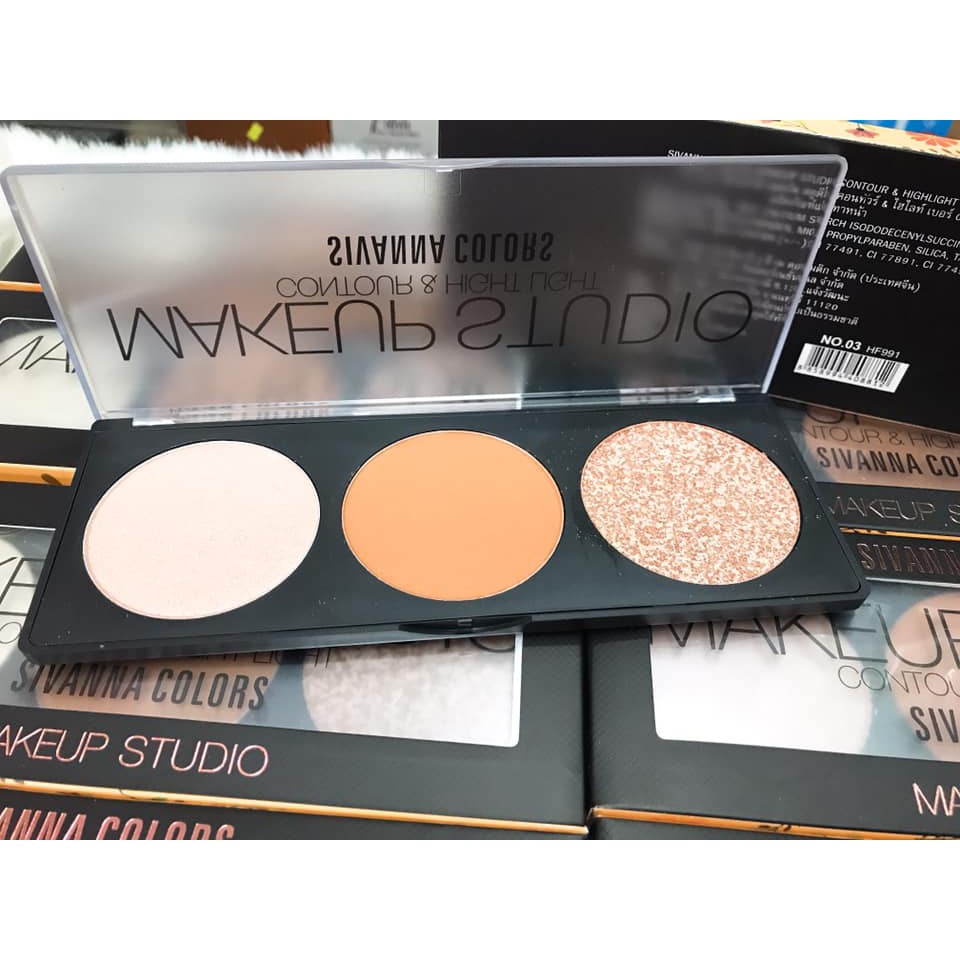 Sản phẩm Phấn Tạo Khối 3 Ô Kèm Ô Bắt Sáng Sivanna Hf991 hiện đang được bán tại Shopee.