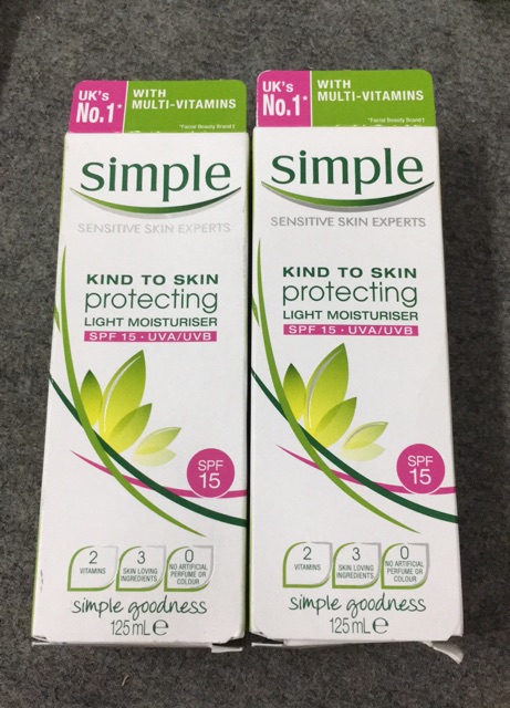 Mẫu ảnh 1 là mẫu mới nhất, bên trong là hình số 1 bao bì nét căng mẫu mới Simple kh bị mờ chữ. Yên tâm mua đi cả nhà nhé. Hàng tớ mua Superdrugs tớ bán giá order cho mọi ng yên tâm rẻ nhất mà đảm bảo nha. Loại Rich là cho da khô nha cả nhà. Kem dưỡng da Simple Kind To Skin Hydrating Light Moisturiser – kem dưỡng ẩm với các thành phần đơn giản lành tính tốt cho làn da, giúp đem lại làn da mềm mịn, khỏe mạnh suốt 12h. Kem dưỡng với chất kem lỏng dễ dàng thẩm thấu lên bề mặt da nên có thể dùng được sáng và tối. Thành phần phức hợp 2 Vital Vitamins: Pro-Vitamin B5 giúp da mềm mịn, Vitamin E da tươi sáng, Glycerin và dầu Borage Seed giúp giữ ẩm và nuôi dưỡng da. Simple Kind To Skin Hydrating Light Moisturiser dùng cho mọi loại da kể cả những làn da nhạt cảm nhất. Hàng date sx mới nhất năm 2017 mua tại Superdrugs Anh
