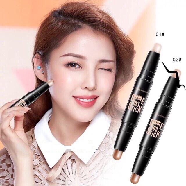 Bút che khuyết điểm và tạo khối đa năng 3 wonder của Maycreate - thỏi 2 đầu với 2 tông màu sáng tối - che khuyết điểm về góc cạnh và tạo hình cơ thể - giúp tạo đường nét cho khuôn mặt - đầu sáp trắng: highlight, tạo sống mũi cao, kẻ mí dưới - đầu sáp nâu: shading làm gọn mặt, kẻ mắt, làm cao sống