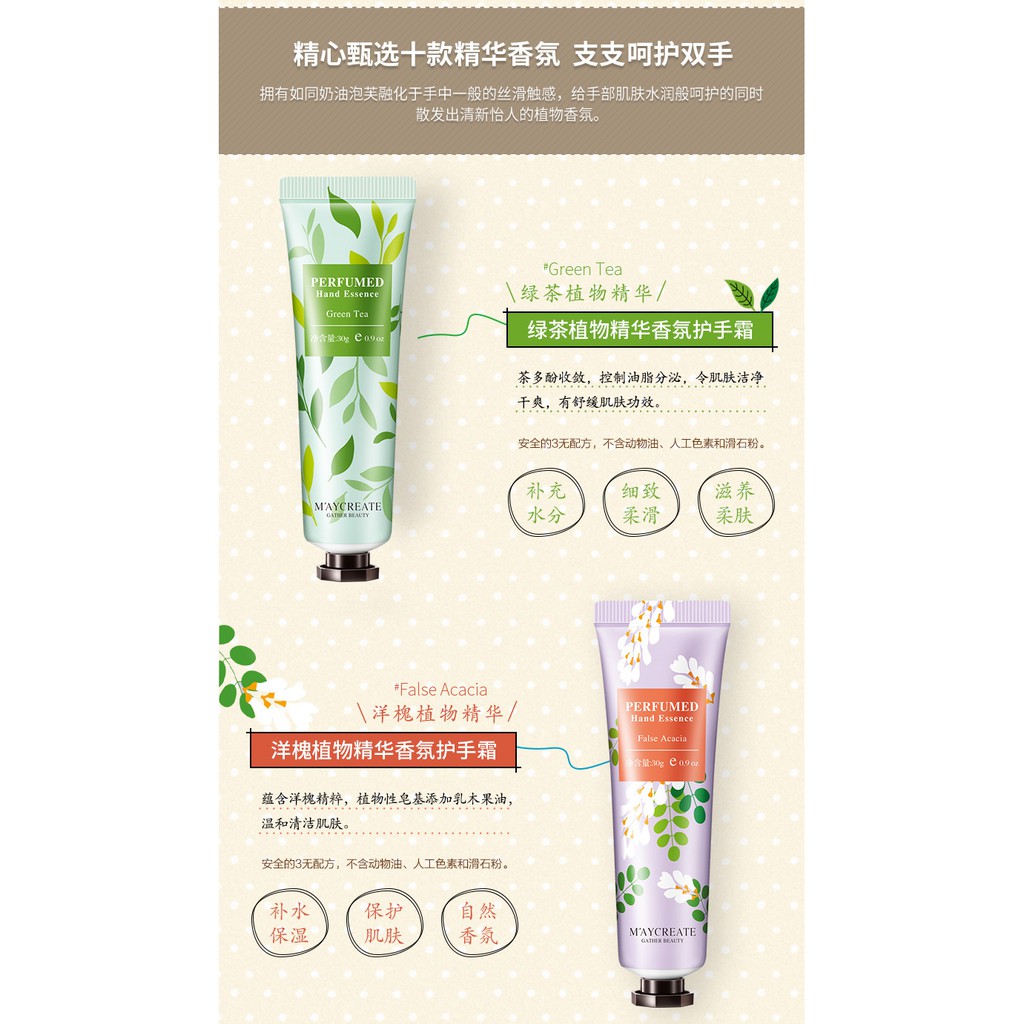 Sản phẩm Kem Dưỡng Da Tay Maycreate Perfumed 30G Mềm Và Thơm Hương Hoa hiện đang được bán tại Shopee.