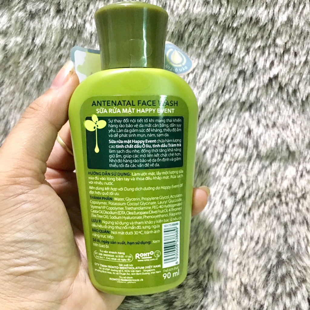 - Sữa rửa mặt tinh dầu olive ngừa mụn Happy Event Antenatal Face Wash 90ml - HSD 2022 - Hàm lượng cao tinh chất dầu Ô liu, tinh dầu Tràm trà. - Làm sạch dịu nhẹ, tăng khả năng giữ ẩm, giúp các mô liên kết chặt chẽ hơn. - Kiểm soát nhờn, ngăn hình thành mụn mới. - Không paraben, không chất tạo màu, an toàn cho phụ nữ mang thai và cho con bú. #happyevent #suaruamat #srmoliu