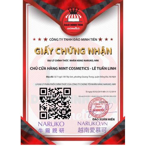 Tác dụng chính: mặt nạ bùn, sữa rửa mặt, tẩy tế bào chết 3 tác dụng trong 1 Công dụng: Sữa rửa mặt bùn trà tràm Naruko làm sạch sâu, cân bằng dầu trên da; ngăn ngừa, hạn chế sinh mụn đầu đen, mụn trứng cá; tẩy đi các tế bào da chết; phòng tránh tình trạng tắc nghẽn lỗ chân lông; duy trì, cân bằng và ổn định lượng dầu trên da; giữ cho da luôn thoáng mát; làm chậm quá trình lão hóa, tăng cường khả năng phục hồi của da; làm sạch lỗ chân lông, tăng độ săn chắc cho da, giúp da luôn thư giãn và thoải mái. Thời hạn sử dụng: 3 năm kể từ ngày sản xuất Lưu ý: Sản phẩm không khuyến khích sử dụng ở vùng mắt và miệng, đề nghị quý khách lưu ý. Nếu không may đang sử dụng, sản phẩm bị dính vào mắt, đề nghị dùng một lượng lớn nước rửa thật sạch. Nếu như da bạn có hiện tượng dị ứng, nổi ngứa, lên mẩn đỏ… lập tức dừng sử dụng ngay. Khách hàng cũng nên hỏi ý kiến bác sỹ để nhận được lời khuyên hữu ích. Sản phẩm không được phép ăn. Đề nghị để xa tầm tay trẻ em, tránh các trường hợp không mong muốn xảy ra. Sản phẩm không sử dụng cho trẻ em dưới 3 tuổi. NSX – HSD: Xem trên bao bì ❤ Mint Cosmetics - Save The Best For You! ❤ ☎️Hotline: 💌 0946.197.668 💌 0946.107.668 💌 098.257.6363 💌 🏡 CS1: Số 7 ngõ 100 Tây Sơn 🏡 CS2: Số 104 ngõ 72 Nguyễn Chí Thanh (ngõ cạnh Heytea) 🏡 CS3: Số 36 Hạ Hồi 🏡 CS4 : Số 43 Bùi Thị Xuân 🏡 CS5 : Ngõ 215, 106 D6 Tô Hiệu, Cầu Giấy.