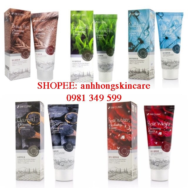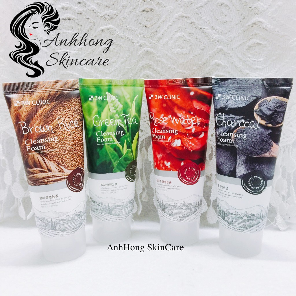 Xuất xứ : Hàn Quốc Trọng lương : 100ml 1 . Sữa rửa mặt nước chất hoa hồng 3W Clinic Rose Water Cleansing Foam - Có khả năng tạo ra lớp bọt siêu mềm mịn, nhẹ nhàng lọc sạch và lấy đi bụi bẩn bám trên da, đảm bảo không gây khô căng da sau khi sử dụng. - An toàn với mọi loại da, đặc biệt rất phù hợp cho da nhờn, mụn và bị lão hóa. 2. Sữa Rửa Mặt 3W Clinic Green Tea Foam Cleansing - Được chiết xuất chủ yếu từ trà xanh, nên có thể chống oxy hóa, làm sạch da và diệt khuẩn hiệu quả. Sử dụng sản phẩm thường xuyên sẽ giúp bạn ngăn ngừa mụn, giúp da mặt trông sáng hơn, mềm mại và căng mịn. Khả năng ngăn ngừa các loại ung thư da nhờ các tinh chất có trong lá trà. 3. Sữa Rửa Mặt Từ Gạo Brown Rice Foam Cleansing 3W Clinic - Giúp tái sinh tế bào mới và làm tăng độ sáng của da, giúp lấy sạch hoàn toàn bụi bẩn và bã nhờn sâu trong lỗ chân lông, đồng thời làm da sáng trắng. Sản phẩm đặc biệt an toàn cho mọi làn da, chăm sóc và phục hồi sức sống cho da hiệu quả . 4. Sữa Rửa Mặt Than Hoạt Tính 3W Clinic - Chiết xuất từ bột than hoạt tính kết cấu rỗng làm sạch sâu bã nhờn cùng lượng dầu dư thừa, ngăn chặn sự hình thành mụn cám, mụn đầu đen ngay sau mỗi lần sử dụng. - Tẩy tế bài chết nhẹ nhàng,làm trắng da, mờ các vết nám tàng nhang trên da.